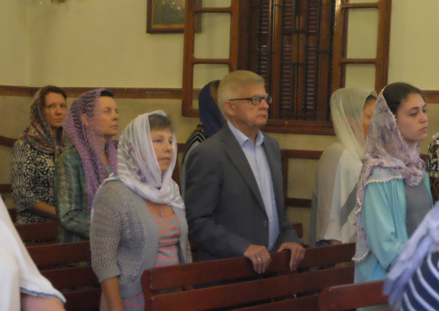 За Божественной литургией молился Чрезвычайный и Полномочный посол Российской Федерации в Ливанской Республике Засыпкин А.С. с супругой, Консул Российской Федерации в Бейруте Горностаев С.