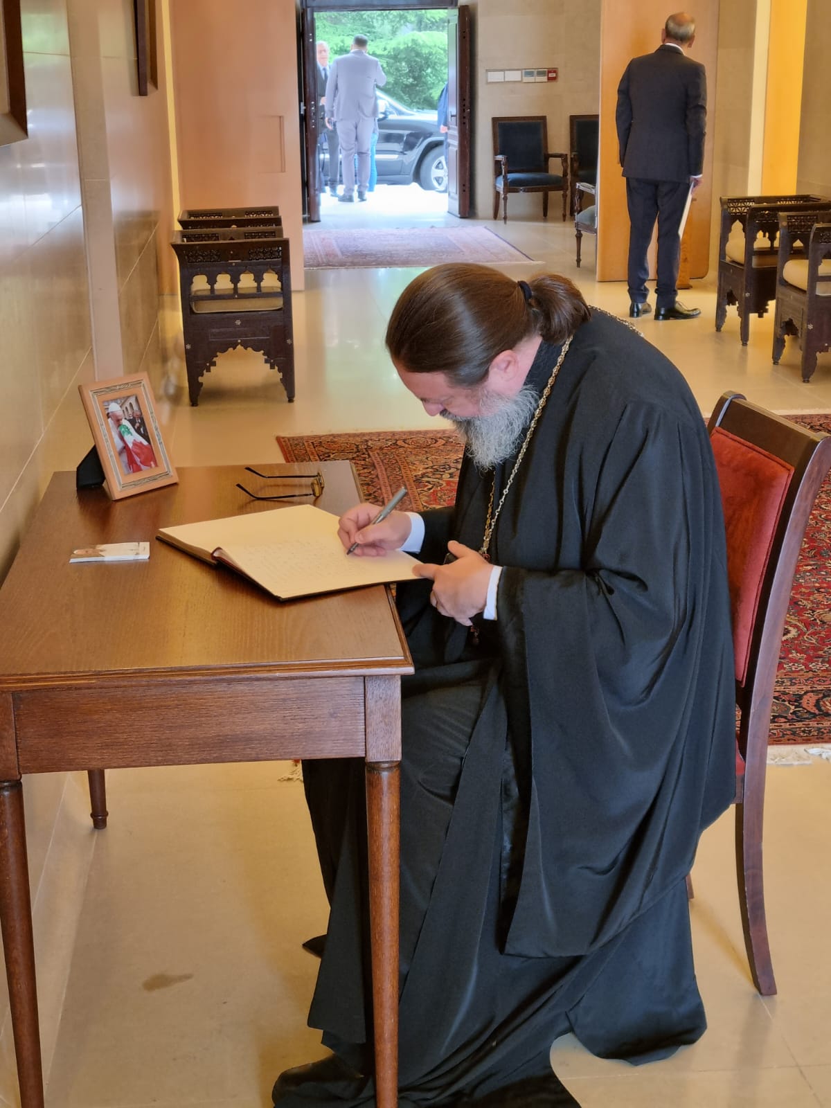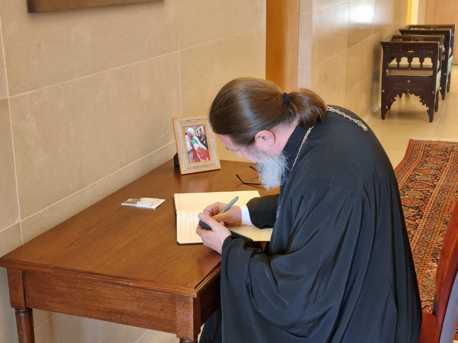 Архимандрит Филипп выразил соболезнования от имени общины Подворья связи с кончиной Папы Римского Франциска апостольскому нунцию в Ливане епископу Паоло Борджа, а также оставил скорбную запись в книге соболезнований: