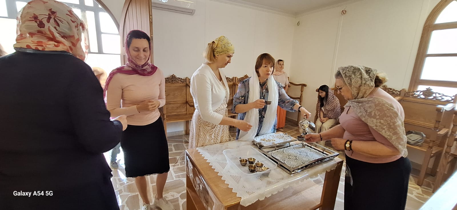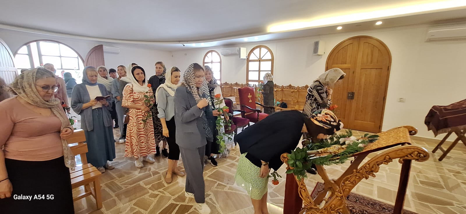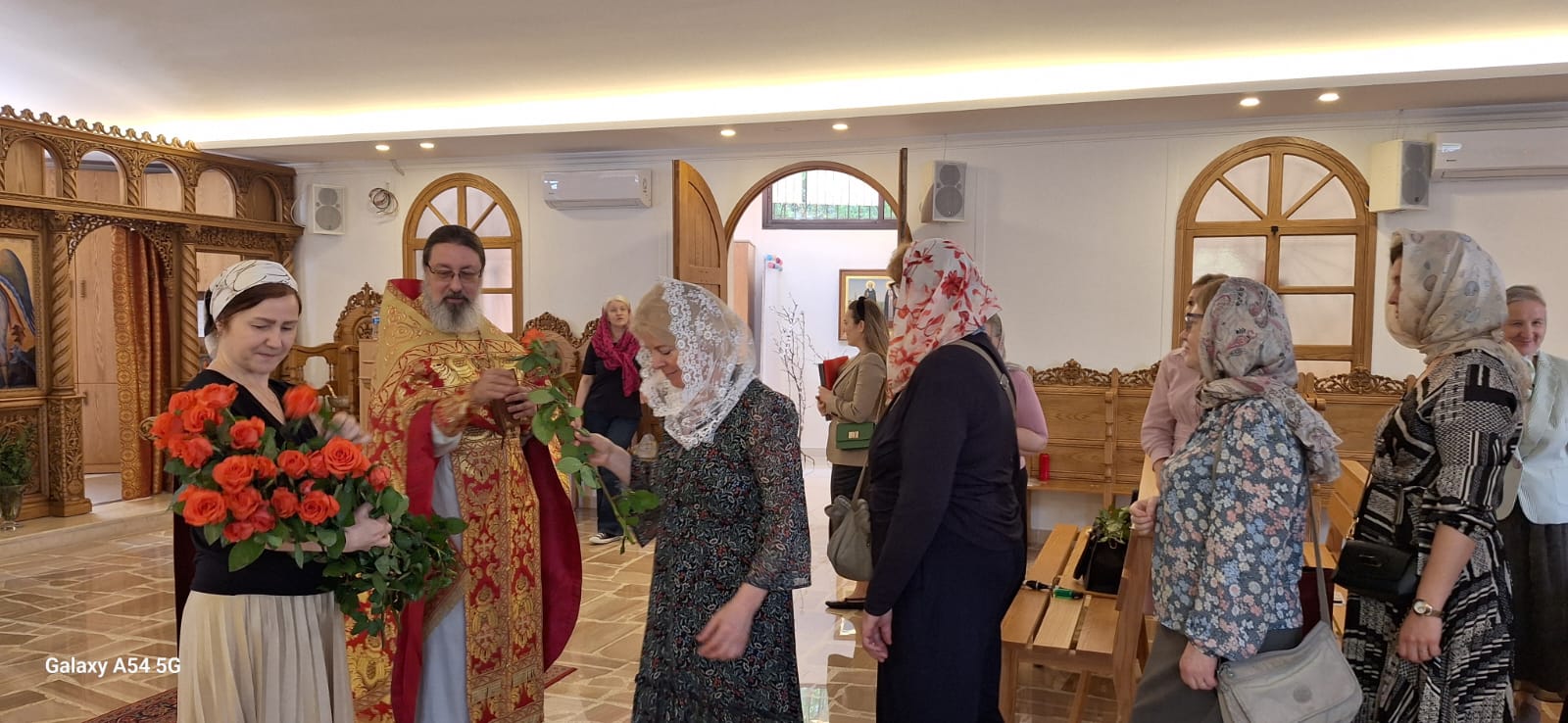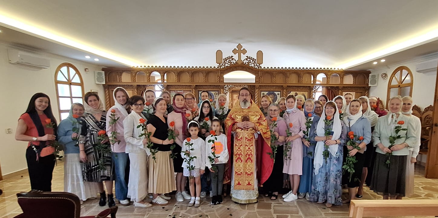 Настоятель поздравил с Неделей святых жен-мироносиц прихожанок Подворья и вручил каждой по красной розе.