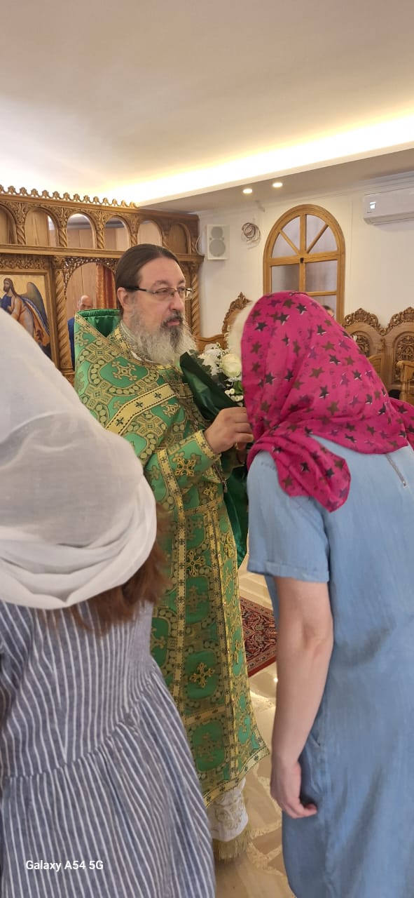 В воскресение, 8 июня, в день Великого двунадесятого праздника Святой Пятидесятницы в храме Благовещения Пресвятой Богородицы была совершена Божественная литургия. Богослужение совершил архимандрит Филипп.