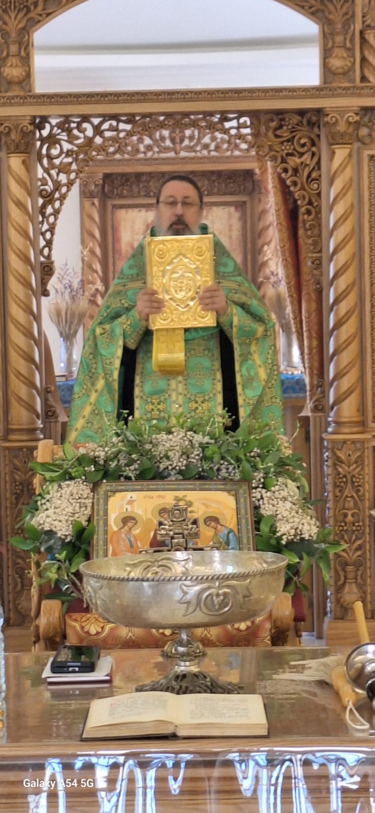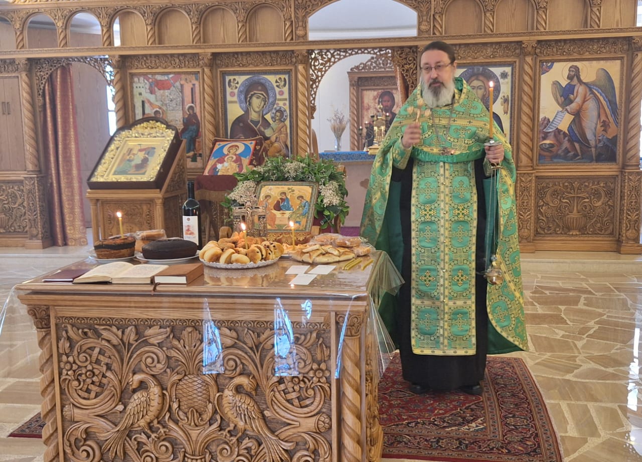 В субботу, 14 июня, в день отдания праздника Святой Пятидесятницы в храме Благовещения Пресвятой Богородицы был совершен Водосвятный молебен и Панихида. Богослужение совершил архимандрит Филипп.