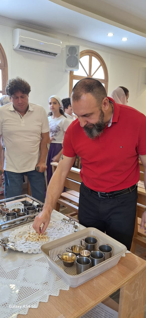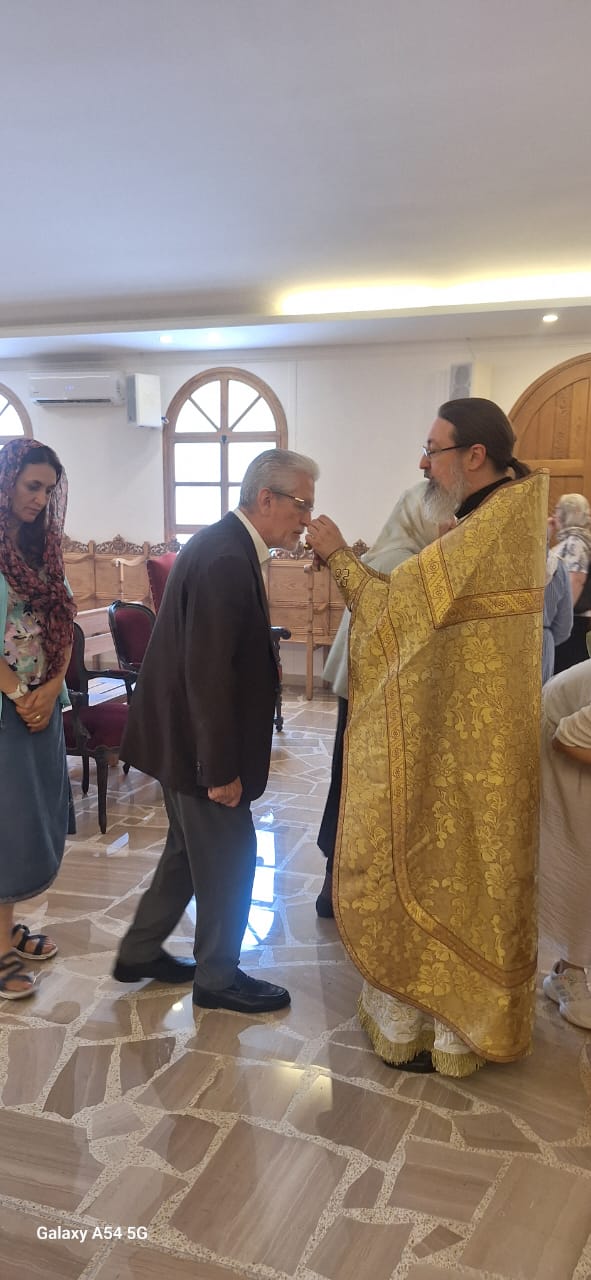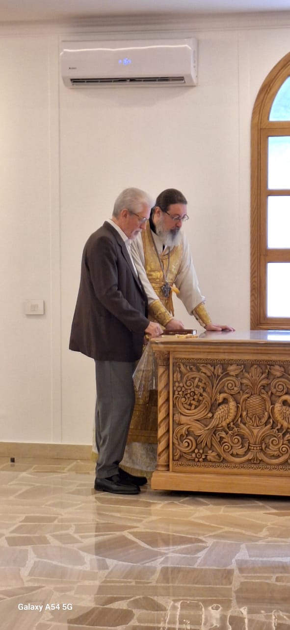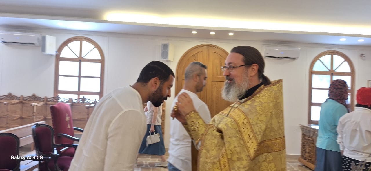 Затем настоятель поздравил с памятными датами постоянных прихожан Подворья Наталию Семаан и Марию Массоуд, вручил им памятные подарки и возгласил многолетие.
