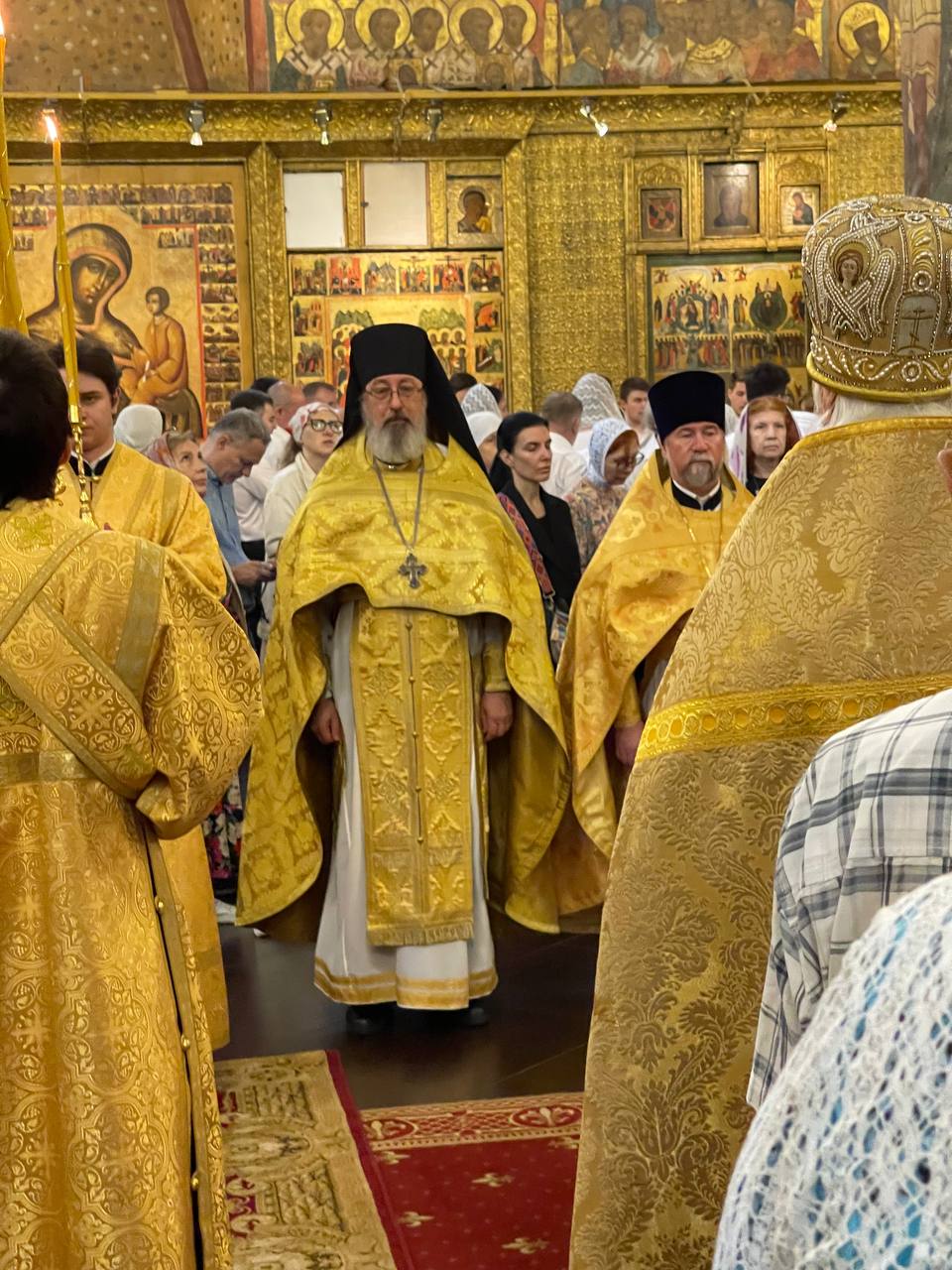 Его Высокопреосвященству сослужили: протопресвитер Владимир Диваков, секретарь Патриарха Московского и всея Руси по г. Москве; протоиерей Вячеслав Шестаков, настоятель храмов Патриаршего подворья в Зарядье; протоиерей Андрей Рахновский, настоятель храма Ризоположения в Леонове; протоиерей Андрей Шумилов, настоятель храма прп. Димитрия Прилуцкого на Девичьем поле; протоиерей Федор Бородин, настоятель храма св. Космы и Дамиана на Маросейке; представитель Патриарха Московского и всея Руси при Патриархе Великой Антиохии и всего Востока архимандрит Филипп, столичное духовенство.