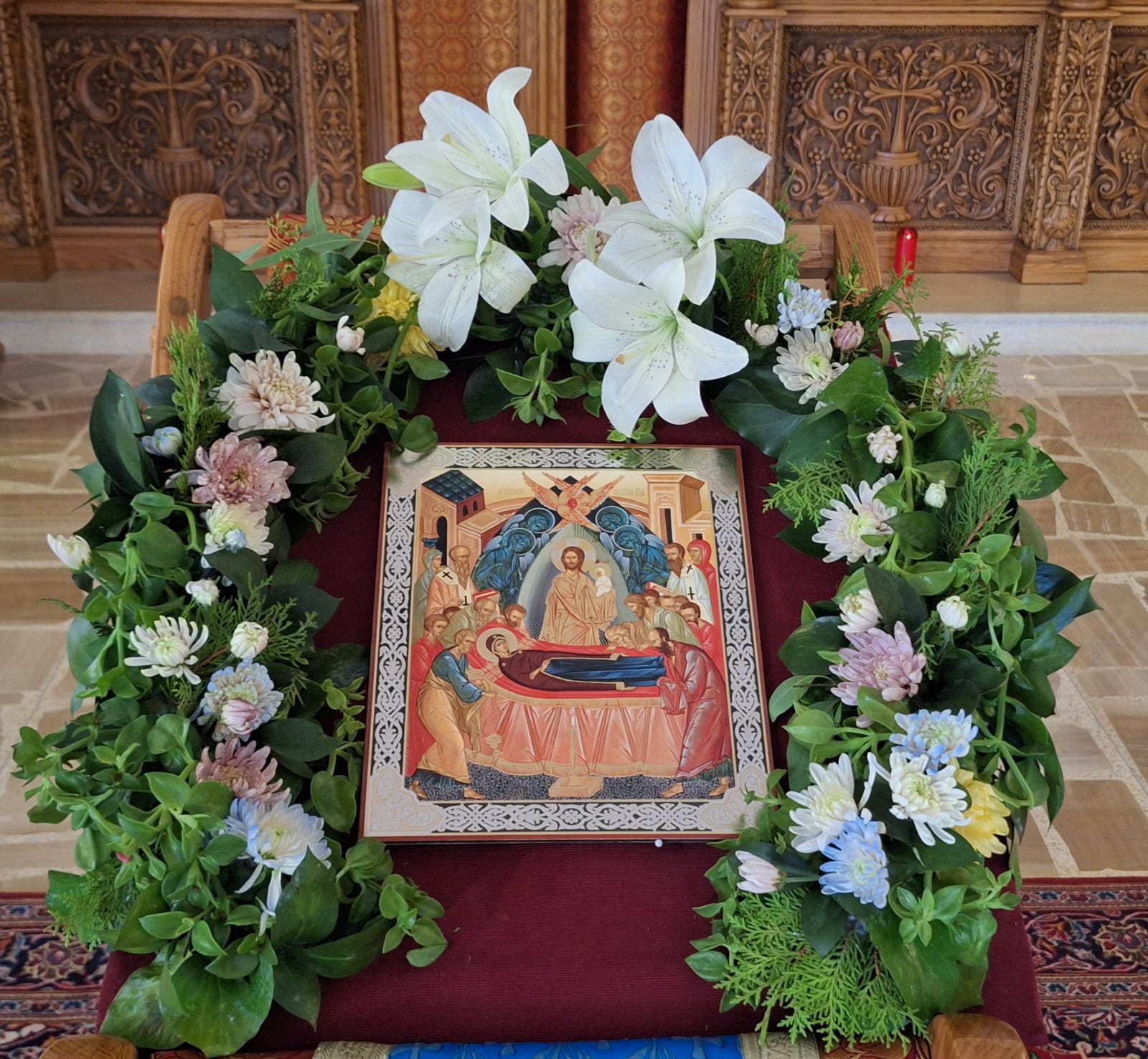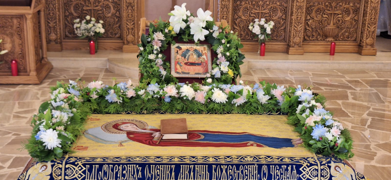 После отпуста Божественной литургии было совершено славление празднику Успения Пресвятой Богородицы.