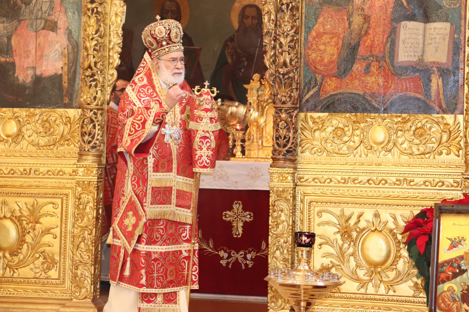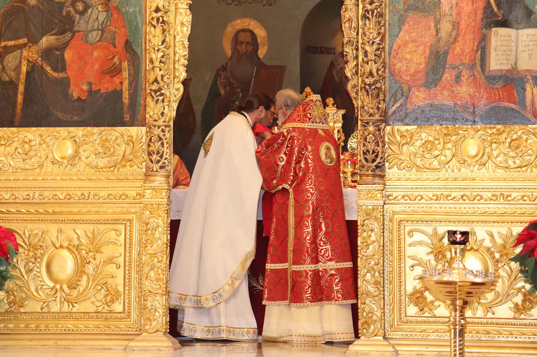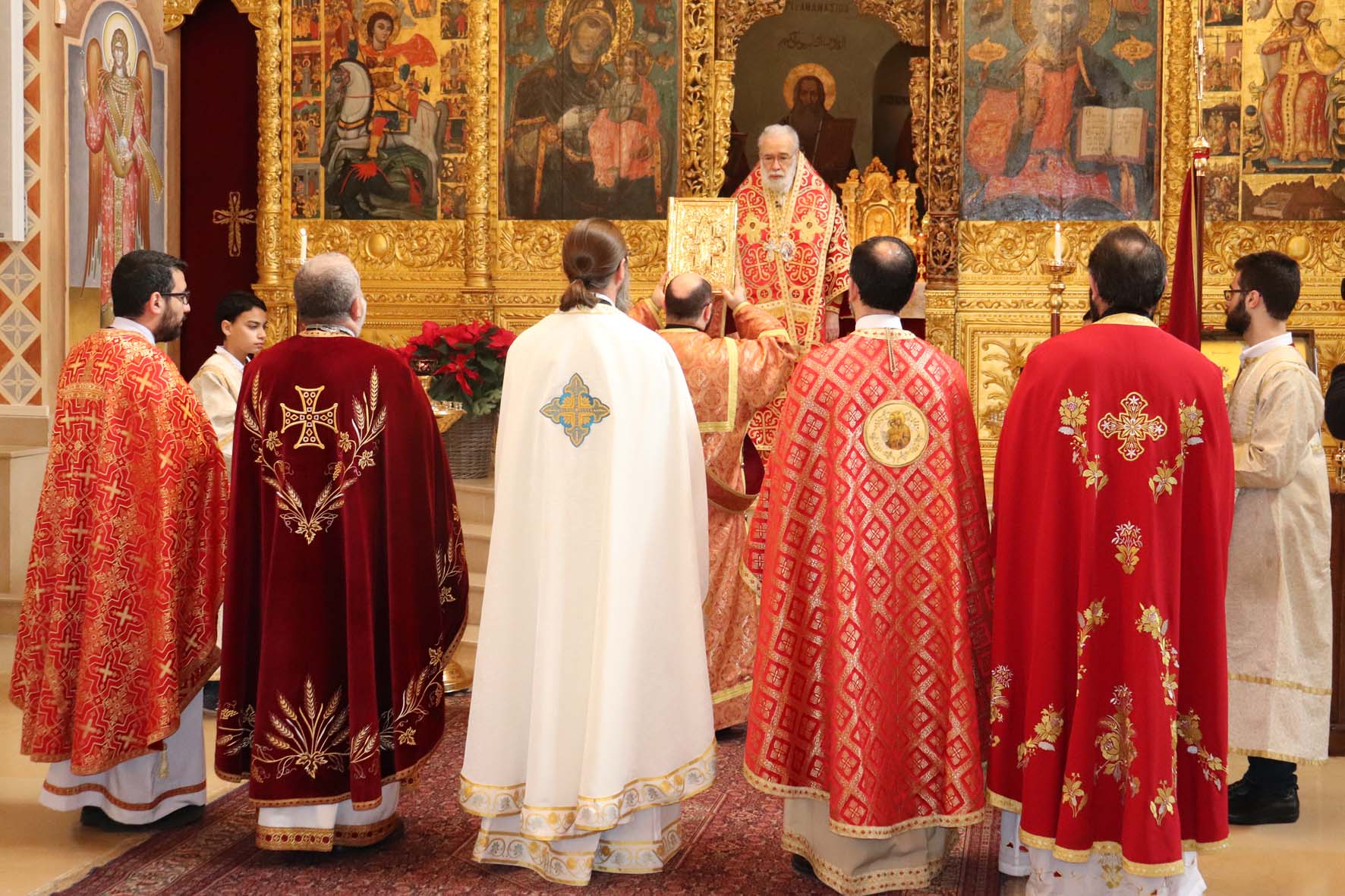 Проповедь на тему праздника после евангельского чтения произнес митрополит Илия. После запричастного стиха архимандрит Филипп поздравил Владыку с великим двунадесятым праздником Рождества Христова и преподнес ему памятные подарки.