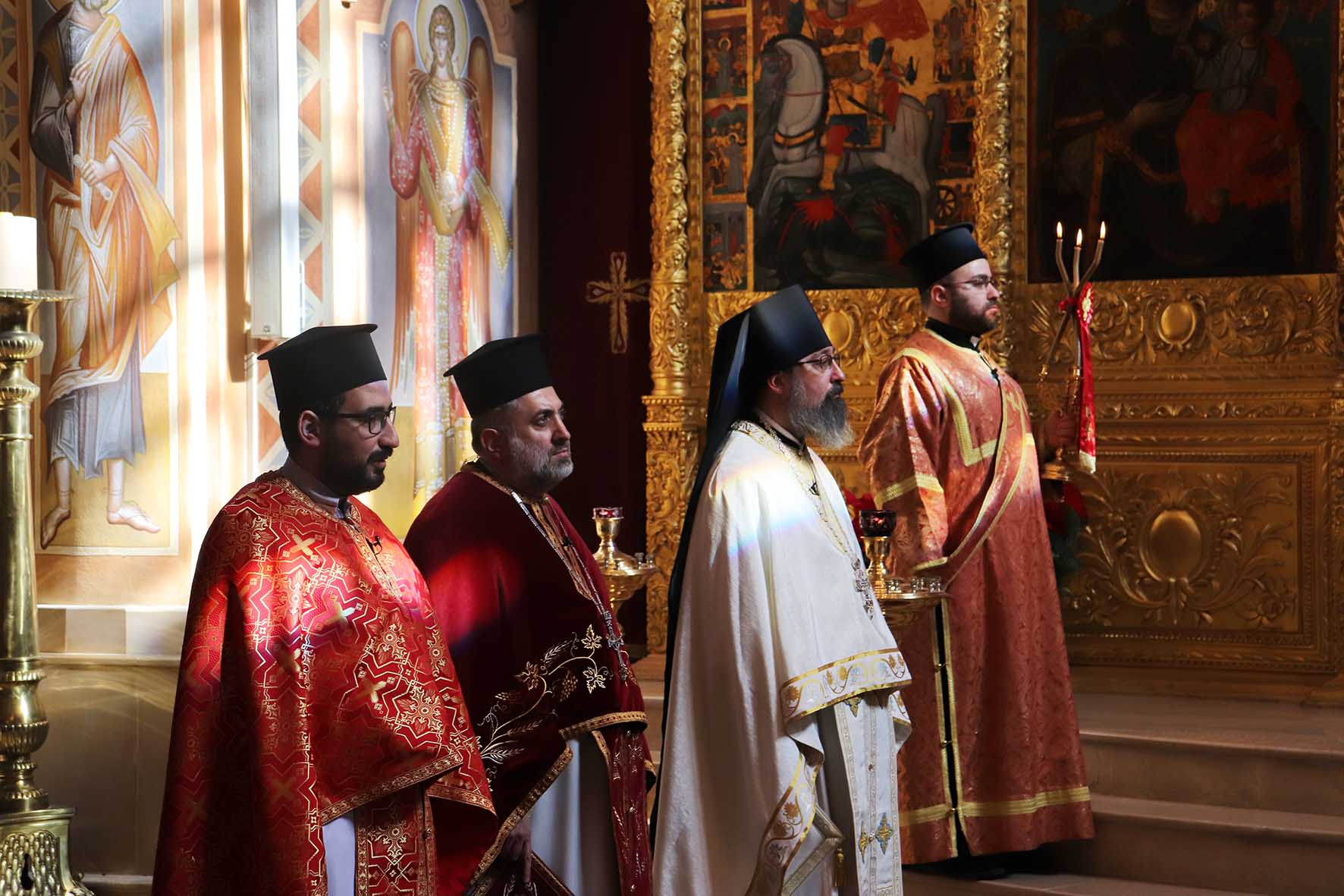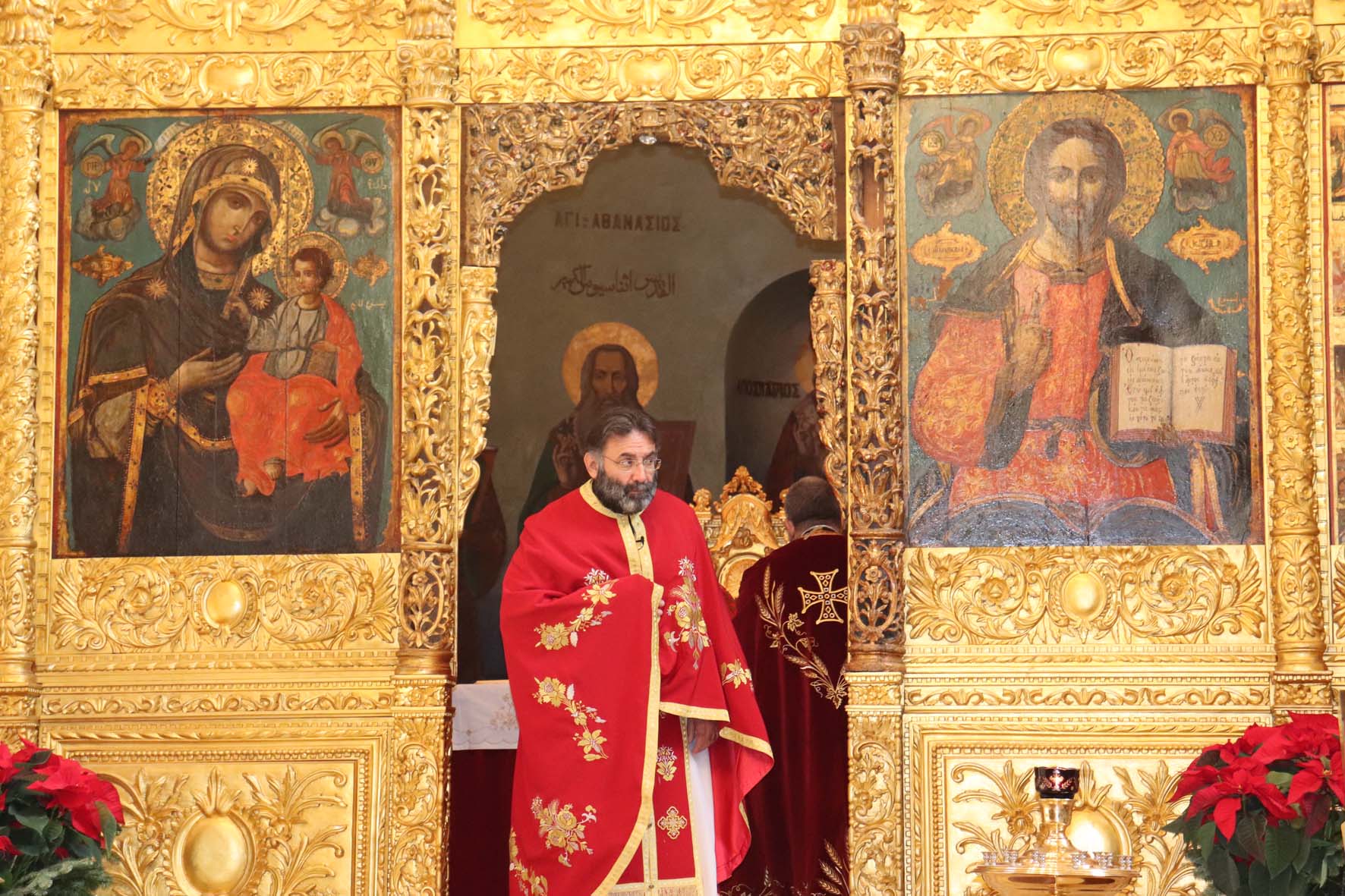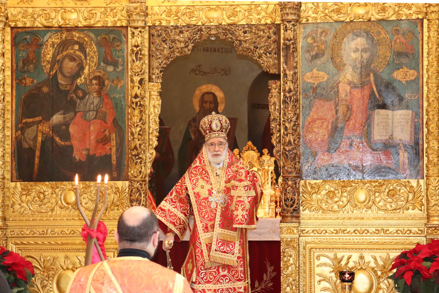 Проповедь на тему праздника после евангельского чтения произнес митрополит Илия. После запричастного стиха архимандрит Филипп поздравил Владыку с великим двунадесятым праздником Рождества Христова и преподнес ему памятные подарки.