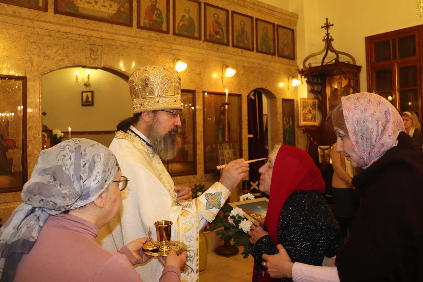 На сугубой ектении архимандрит Филипп произнёс прошения о единстве Православной Церкви и сохранении Церкви от разделений и расколов. После сугубой ектении отец Иоанн вознёс молитву о мире на Украине.