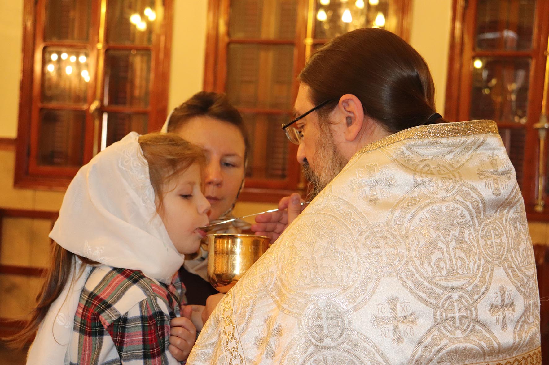 На сугубой ектении прозвучали прошения о единстве Православной Церкви и сохранении Церкви от разделений и расколов. После сугубой ектении настоятель вознёс молитву о мире на Украине.