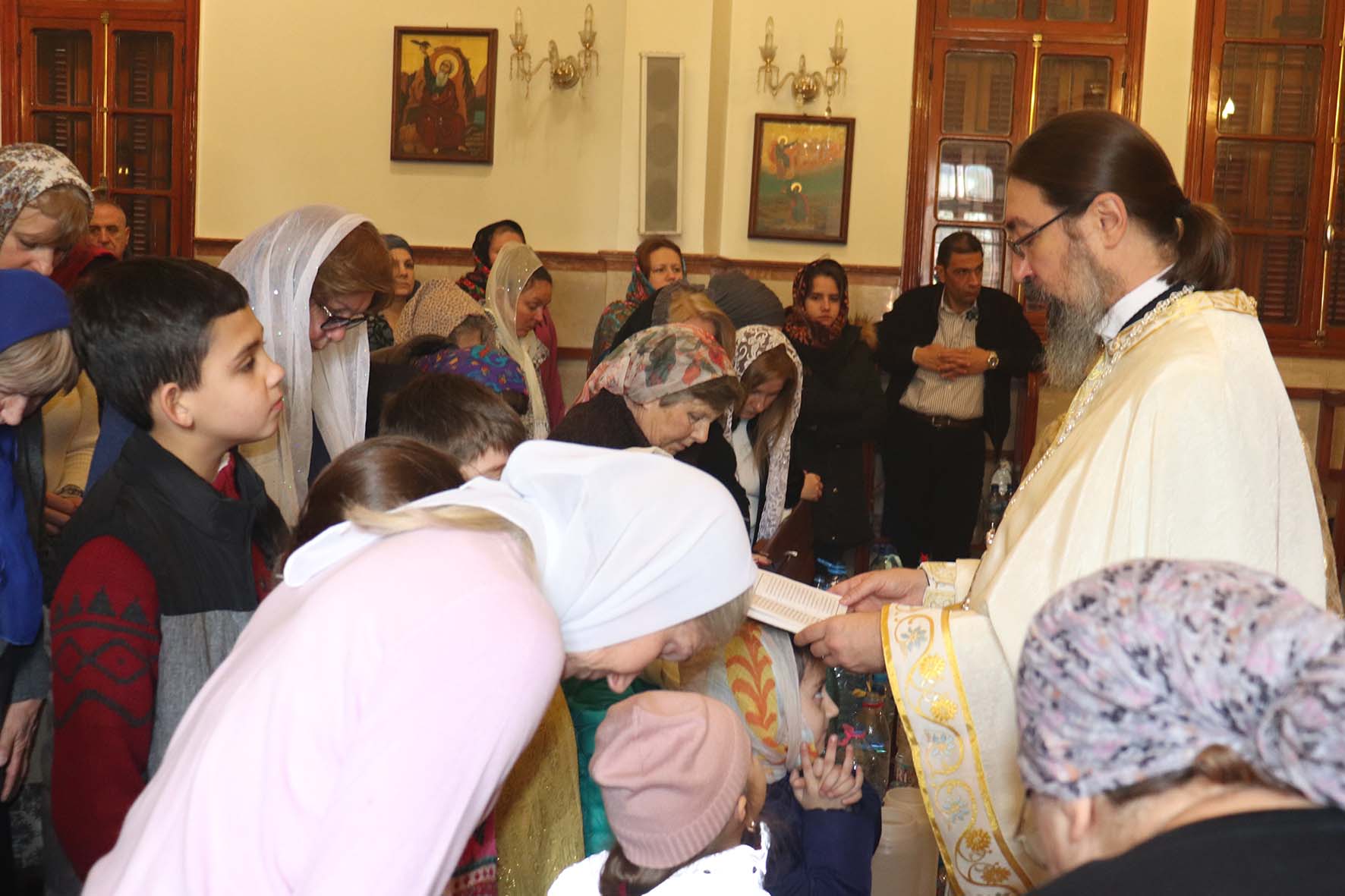 После отпуста Божественной литургии краткую проповедь на тему праздника произнес архимандрит Филипп. Настоятель Подворья также тепло приветствовал протоиерея Герасима, настоятеля прихода, в одном из храмов которого совершает богослужения община Русской Православной Церкви. Архимандрит Филипп выразил надежду, что и в будущем отец Герасим сможет разделить с общиной Подворья радость совместного празднования Великих двунадесятых праздников по старому стилю, что позволит арабоязычным прихожанам более полно участвовать в наших богослужениях.