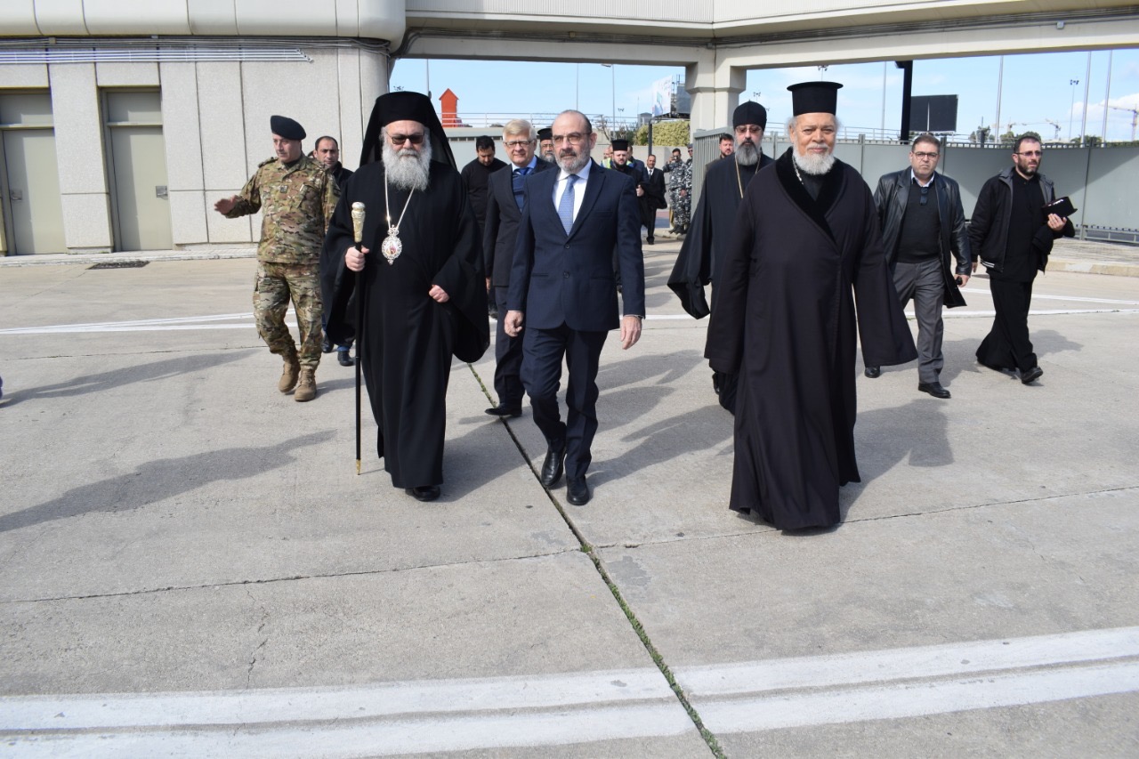 В аэропорту Бейрута высоких гостей провожали: министр обороны Ливанской Республики Якуб Сарраф, Чрезвычайный и Полномочный посол Российской Федерации в Ливанской Республике А.С. Засыпкин, настоятель Подворья Русской Православной Церквы в Бейруте архимандрит Филипп.