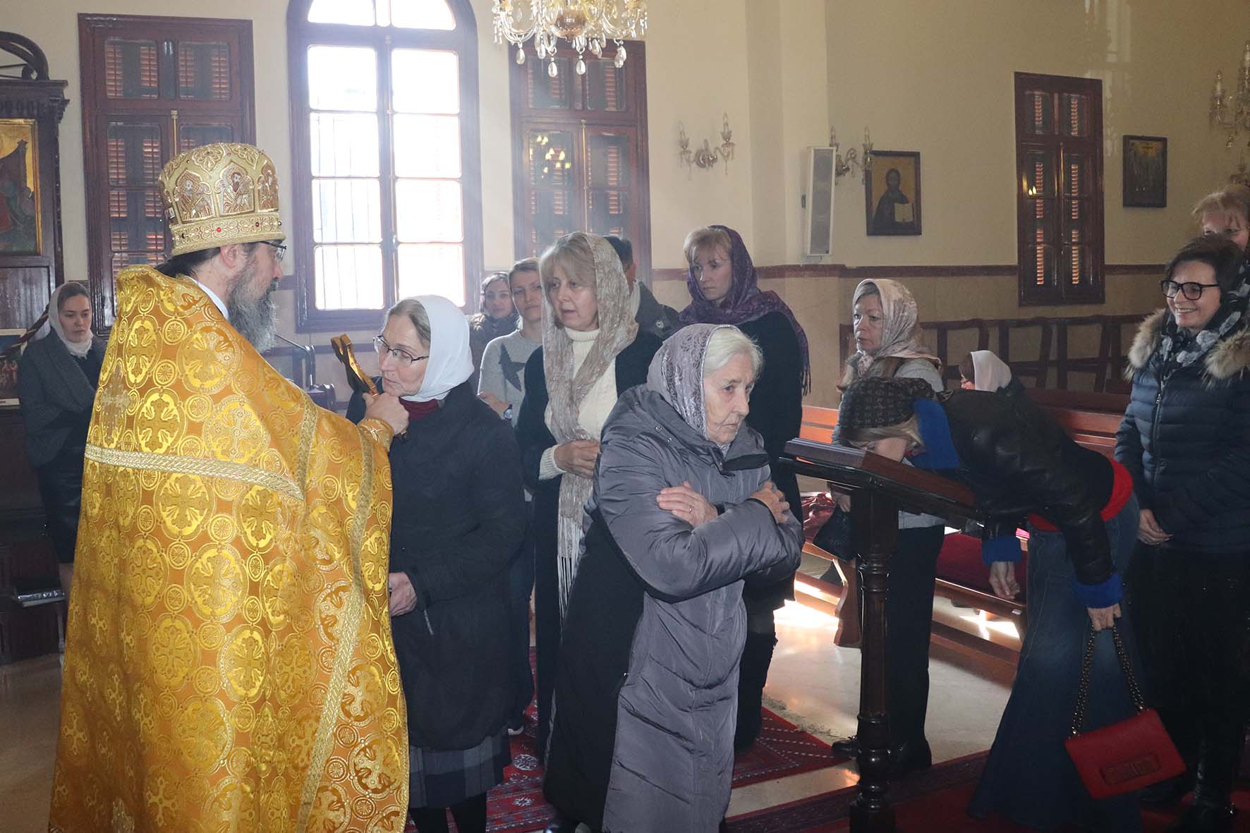 На сугубой ектении прозвучали прошения о единстве Православной Церкви и сохранении Церкви от разделений и расколов. После сугубой ектении настоятель вознёс молитву о мире на Украине.