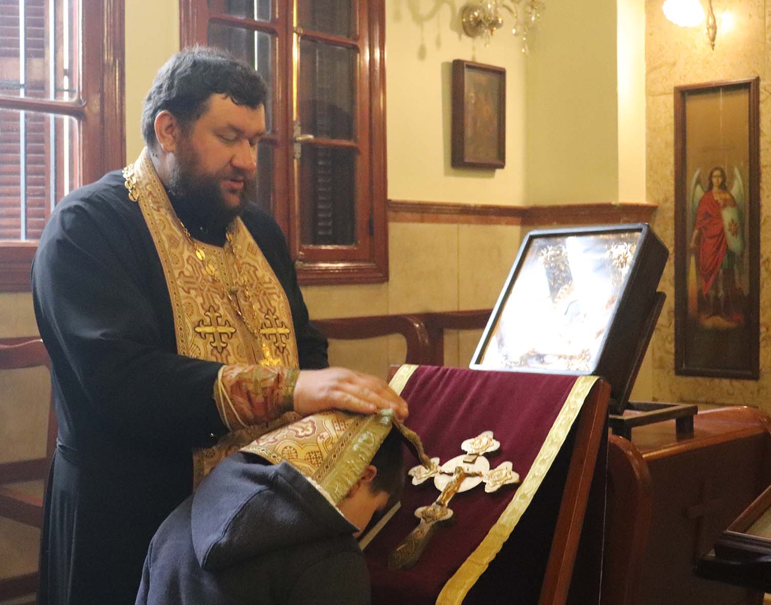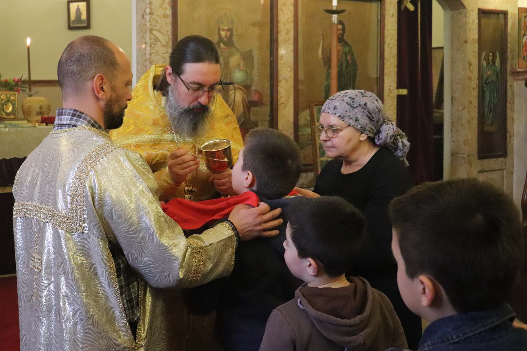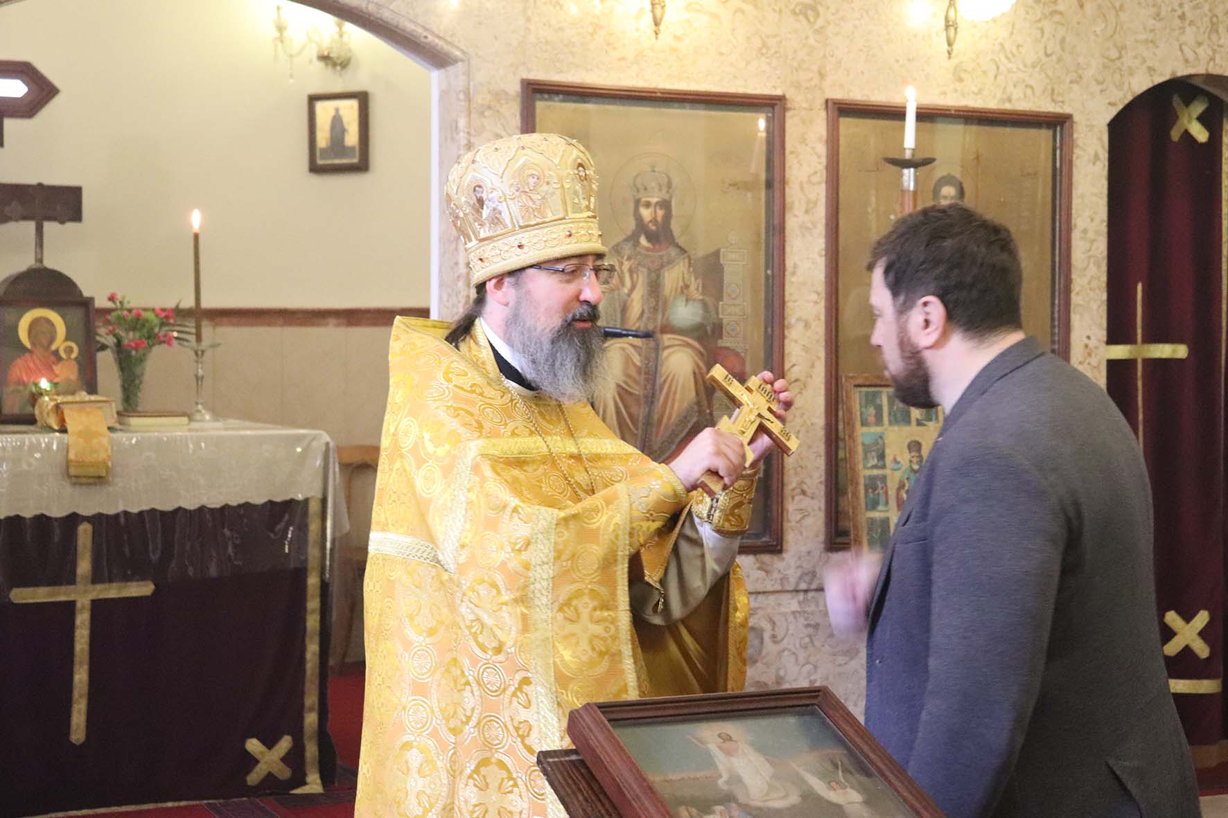На сугубой ектении прозвучали прошения о единстве Православной Церкви и сохранении Церкви от разделений и расколов. После сугубой ектении настоятель вознёс молитву о мире на Украине.