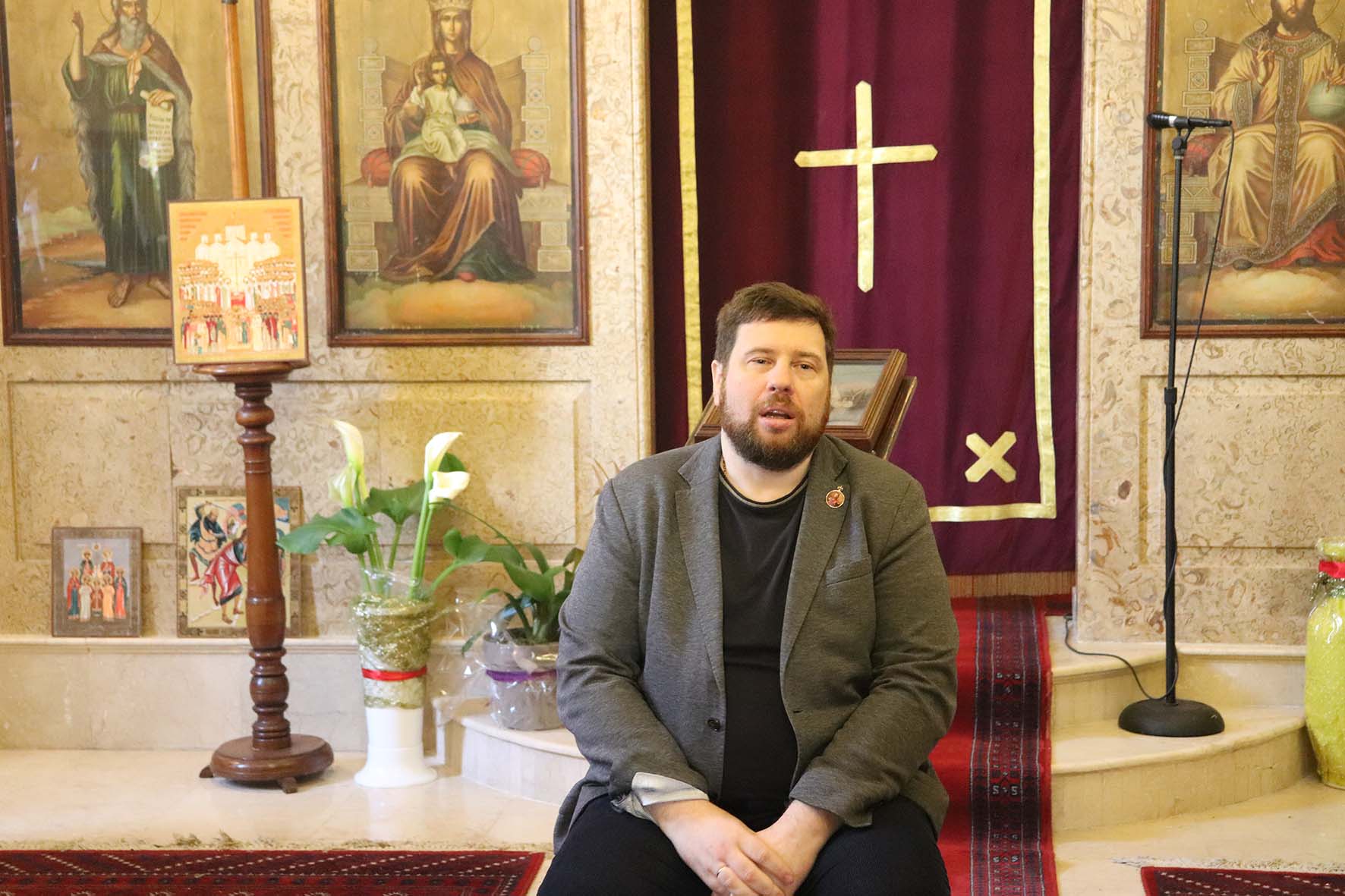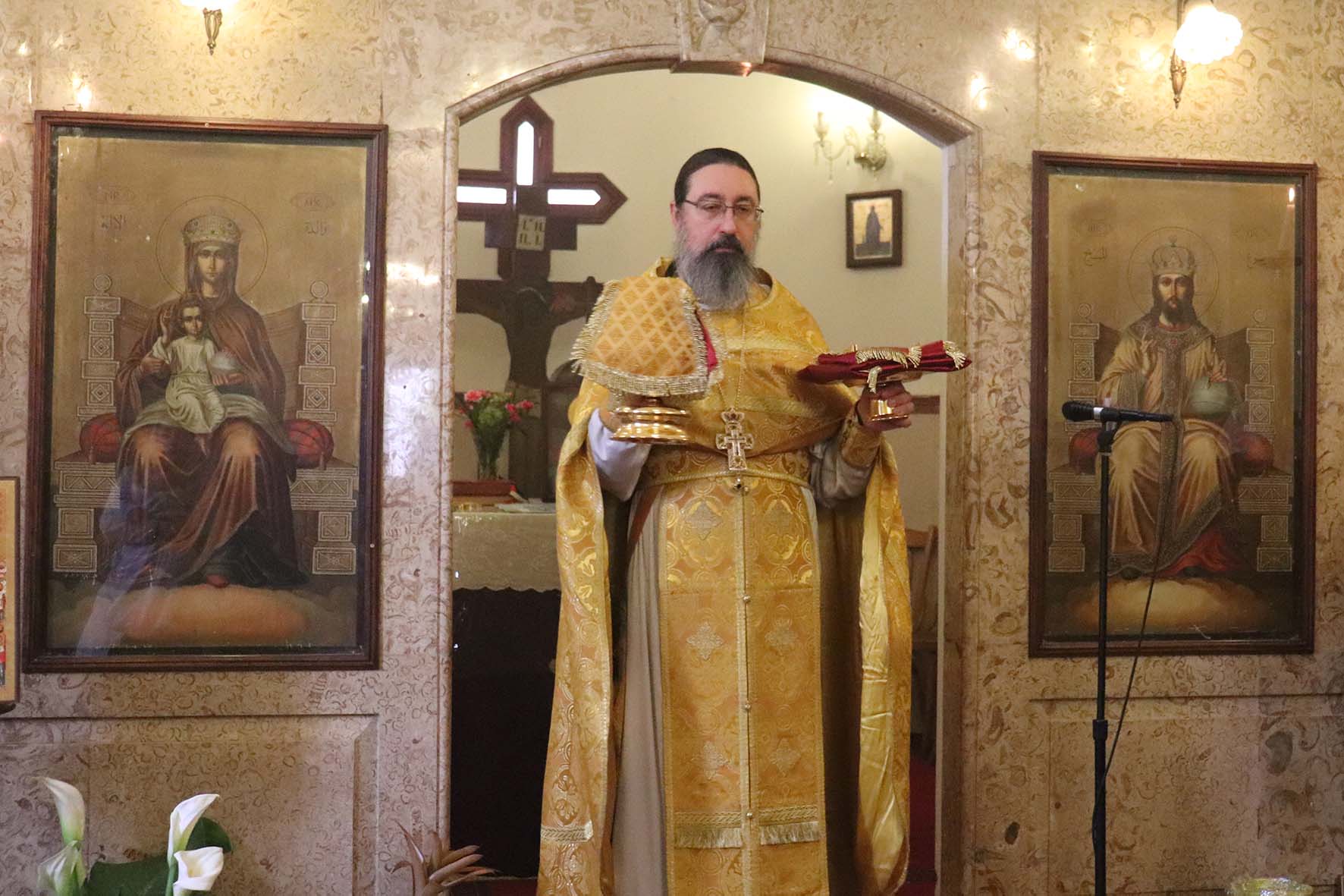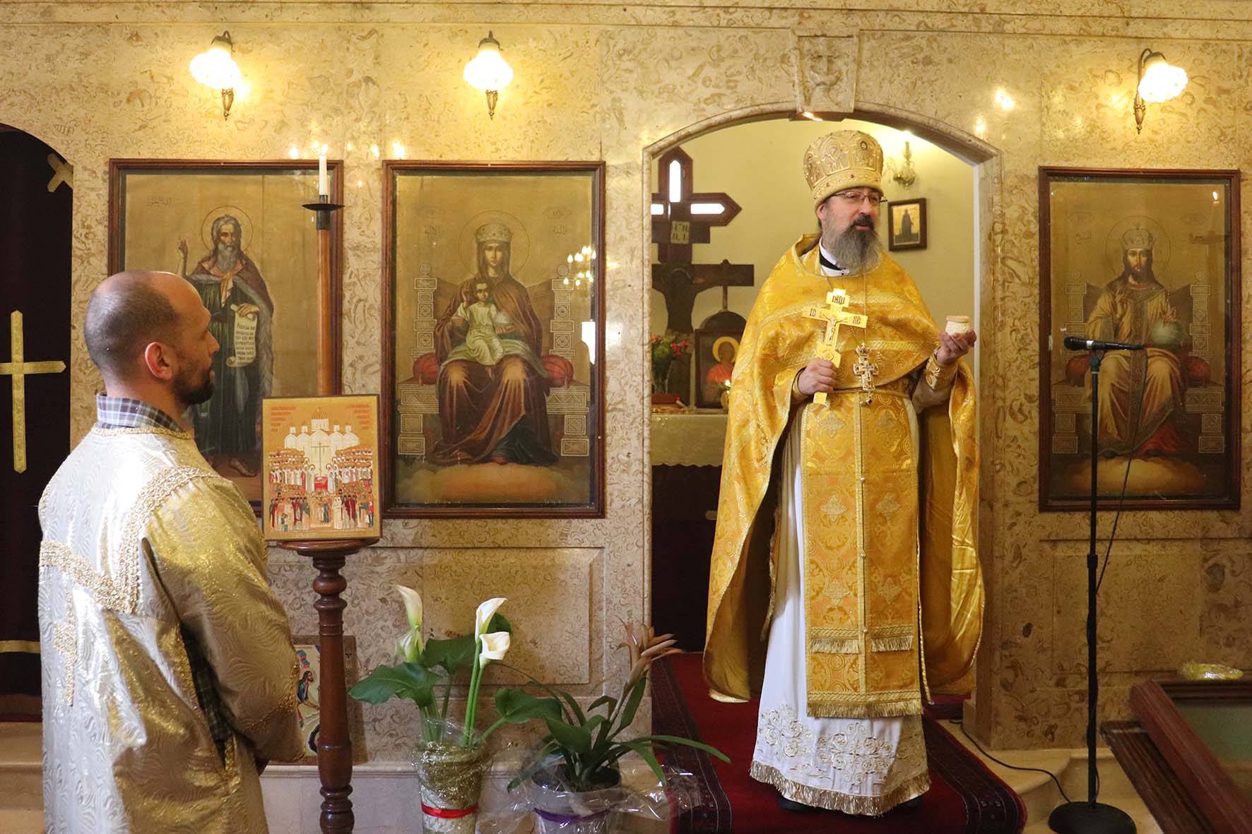 За Божественной литургией молился клирик Рязанской митрополии Русской Православной Церкви иерей Сергий и паломники из России.