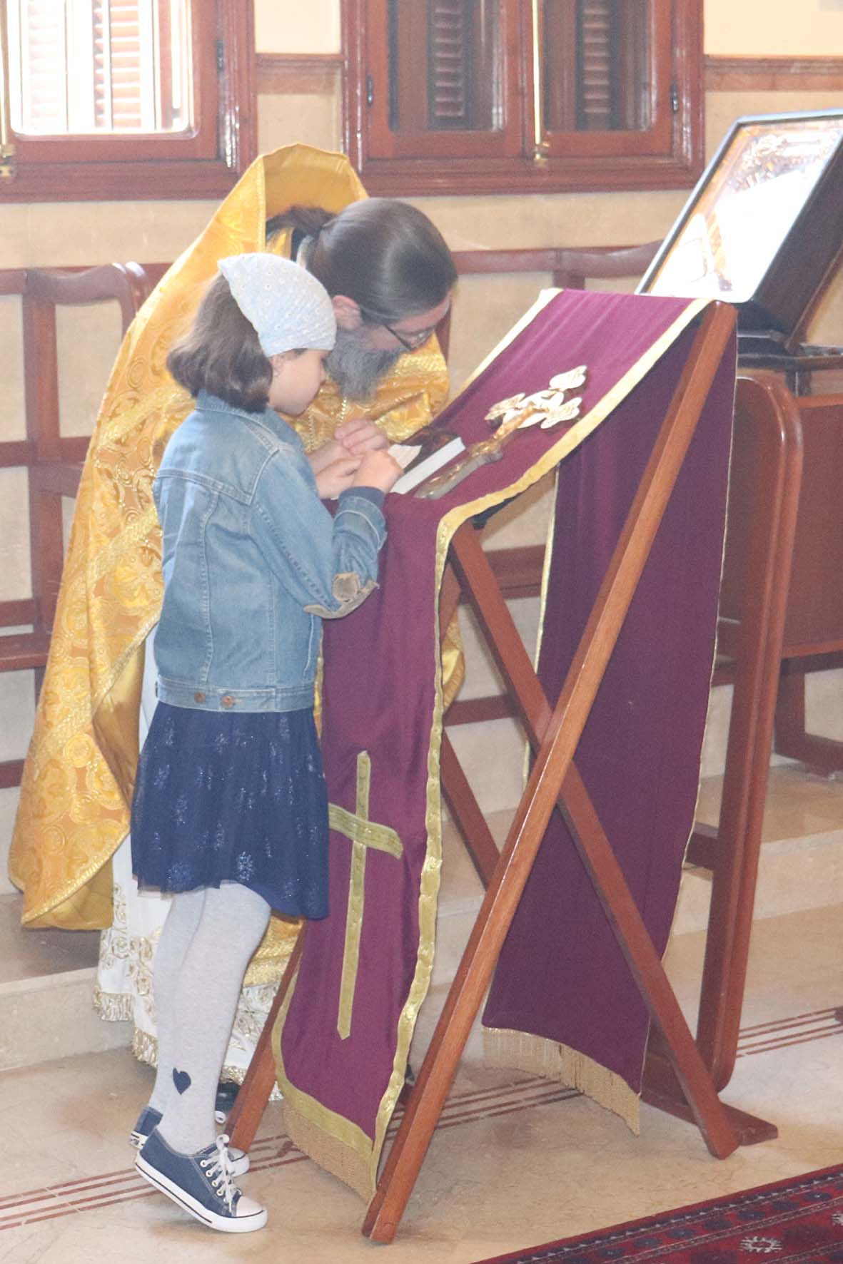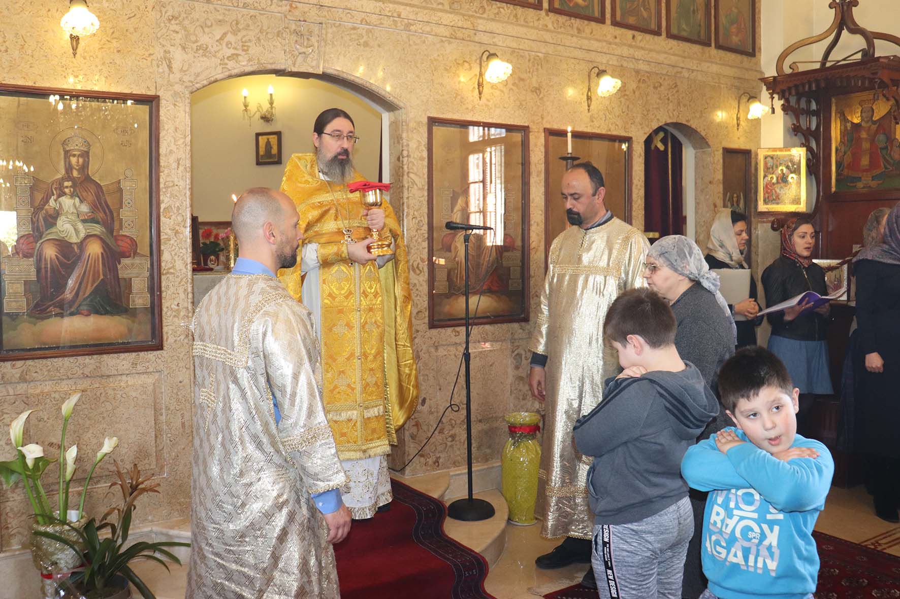 На сугубой ектении прозвучали прошения о единстве Православной Церкви и сохранении Церкви от разделений и расколов. После сугубой ектении настоятель вознёс молитву о мире на Украине.