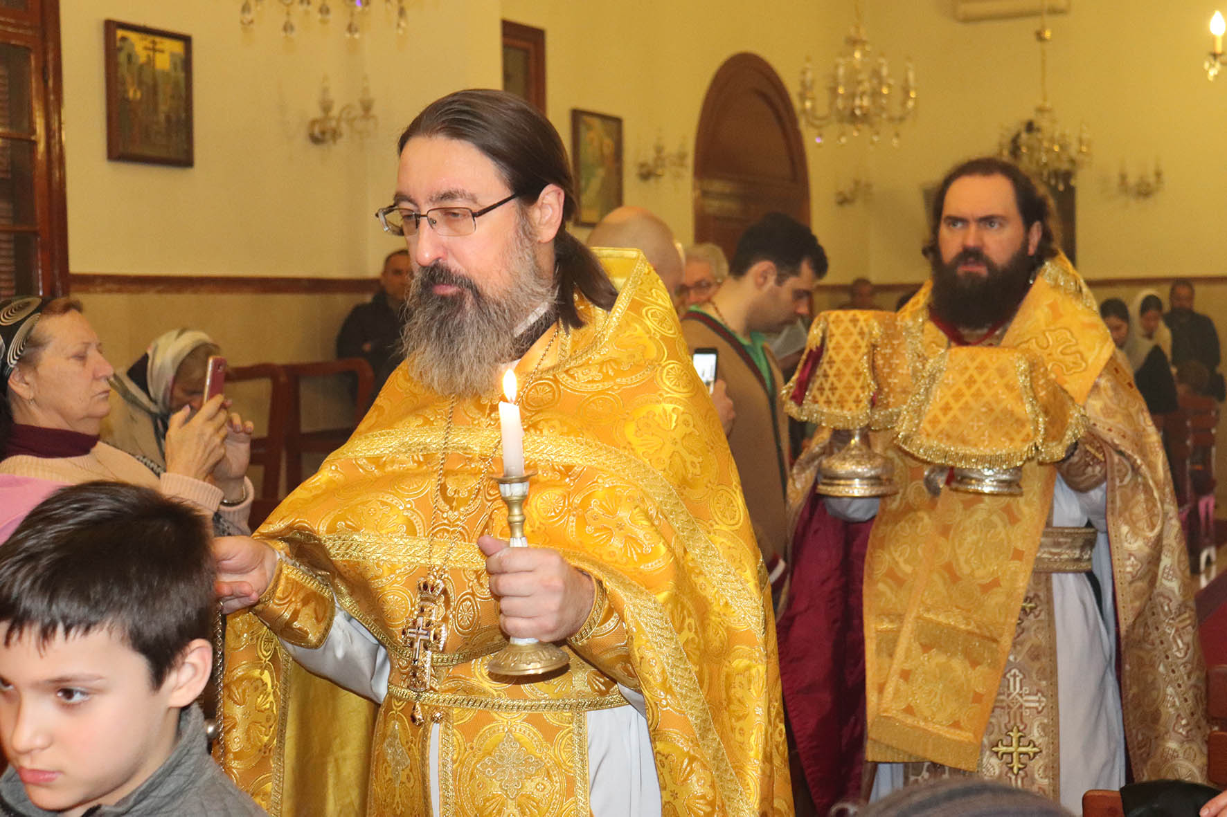 На сугубой ектении прозвучали прошения о единстве Православной Церкви и сохранении Церкви от разделений и расколов. После сугубой ектении Владыка Феофилакт вознёс молитву о мире на Украине.