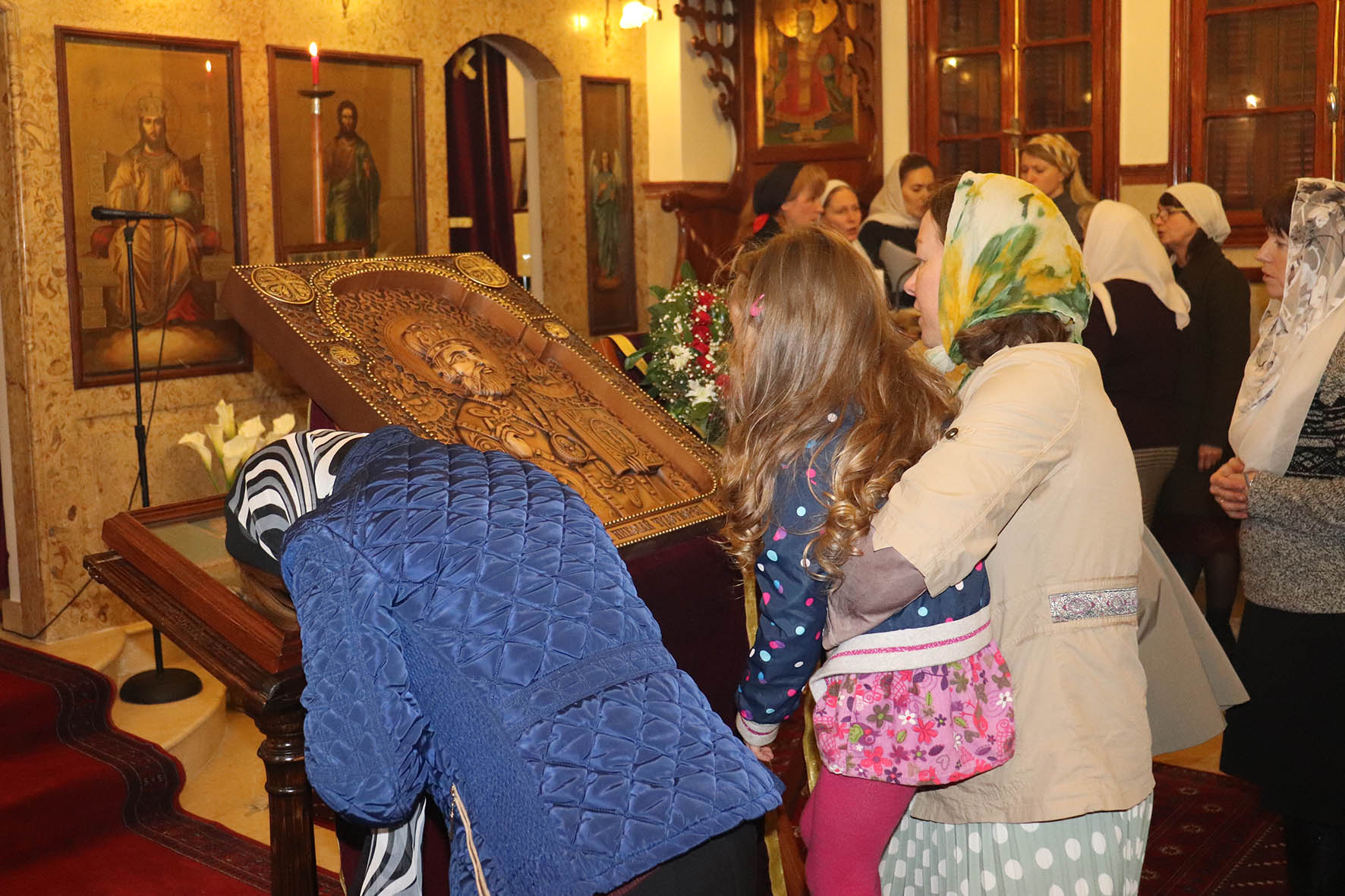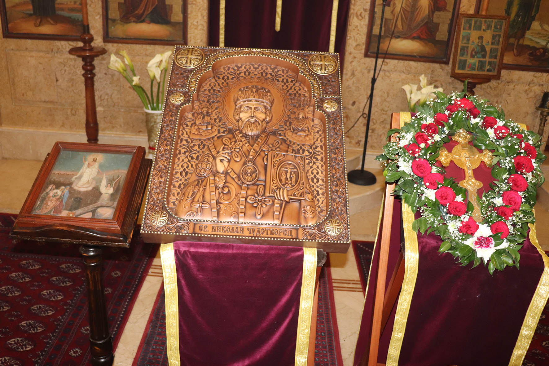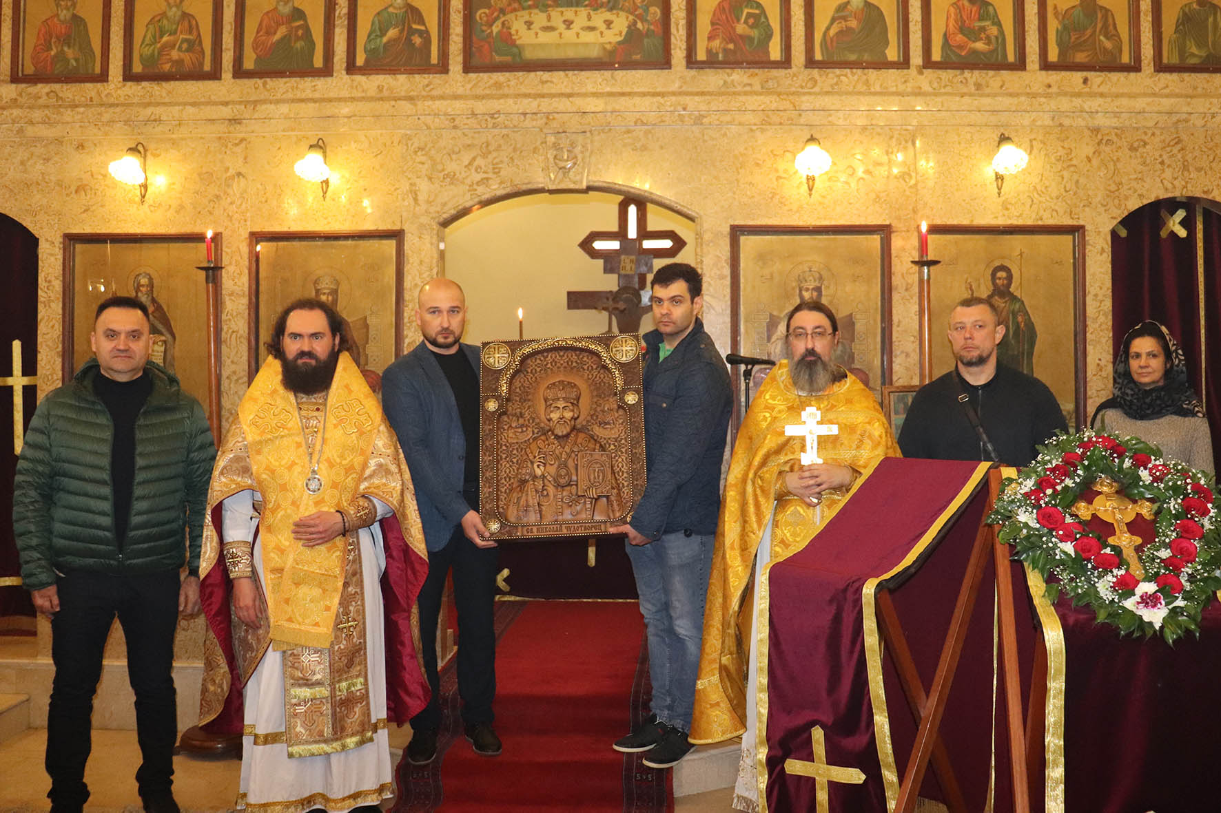 В своем ответном слове Владыка Феофилакт приветствовал членов общины Подворья Русской Православной Церкви в Ливане и передал в дар общине икону свт. Николая Чудотворца , выполненную в технике резьбы по дереву мастерами Северного Кавказа.