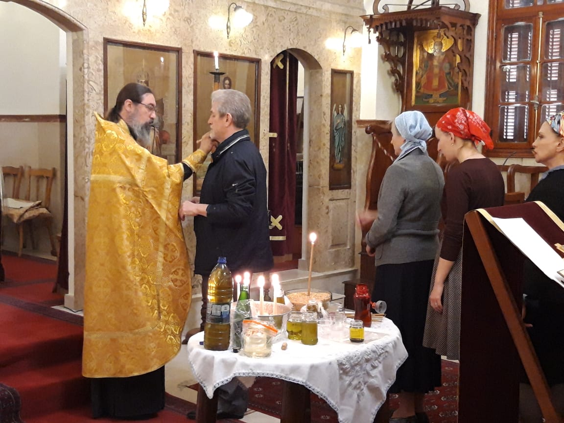 В четверг, 18 апреля, в храме св. Иоанна Предтечи было совершено Таинство Елеосвящения (Маслособорование).