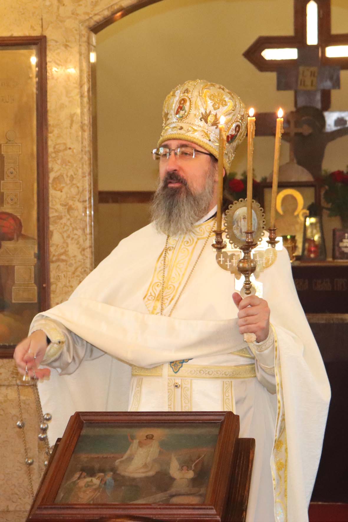 На сугубой ектении прозвучали прошения о единстве Православной Церкви и сохранении Церкви от разделений и расколов. После сугубой ектении настоятель вознёс молитву о мире на Украине.