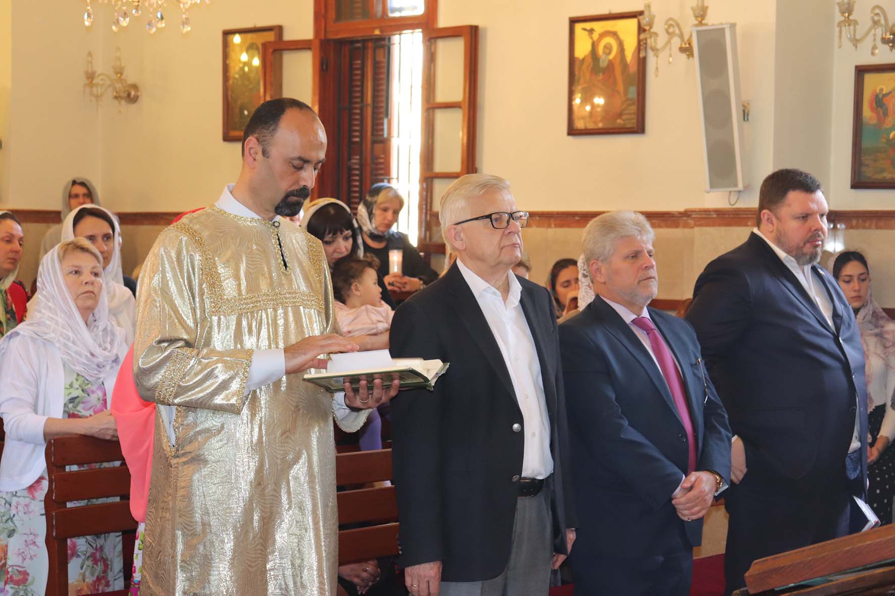 За Божественной литургией молились Чрезвычайный и Полномочный посол России в Ливане А.С. Засыпкин, Депутат Государственной Думы Российской Федерации Марченко Евгений Евгеньевич.