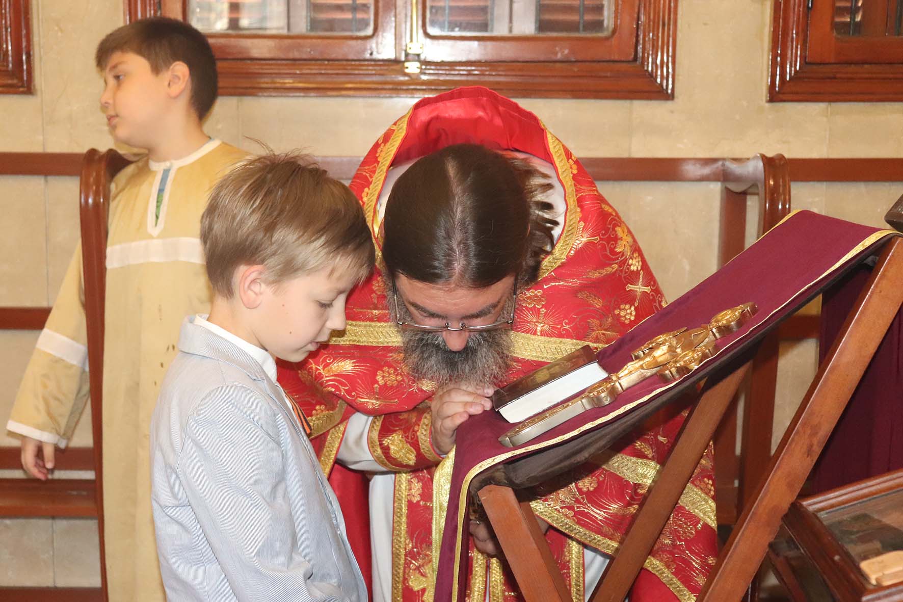 На сугубой ектении прозвучали прошения о единстве Православной Церкви и сохранении Церкви от разделений и расколов. После сугубой ектении настоятель вознёс молитву о мире на Украине.