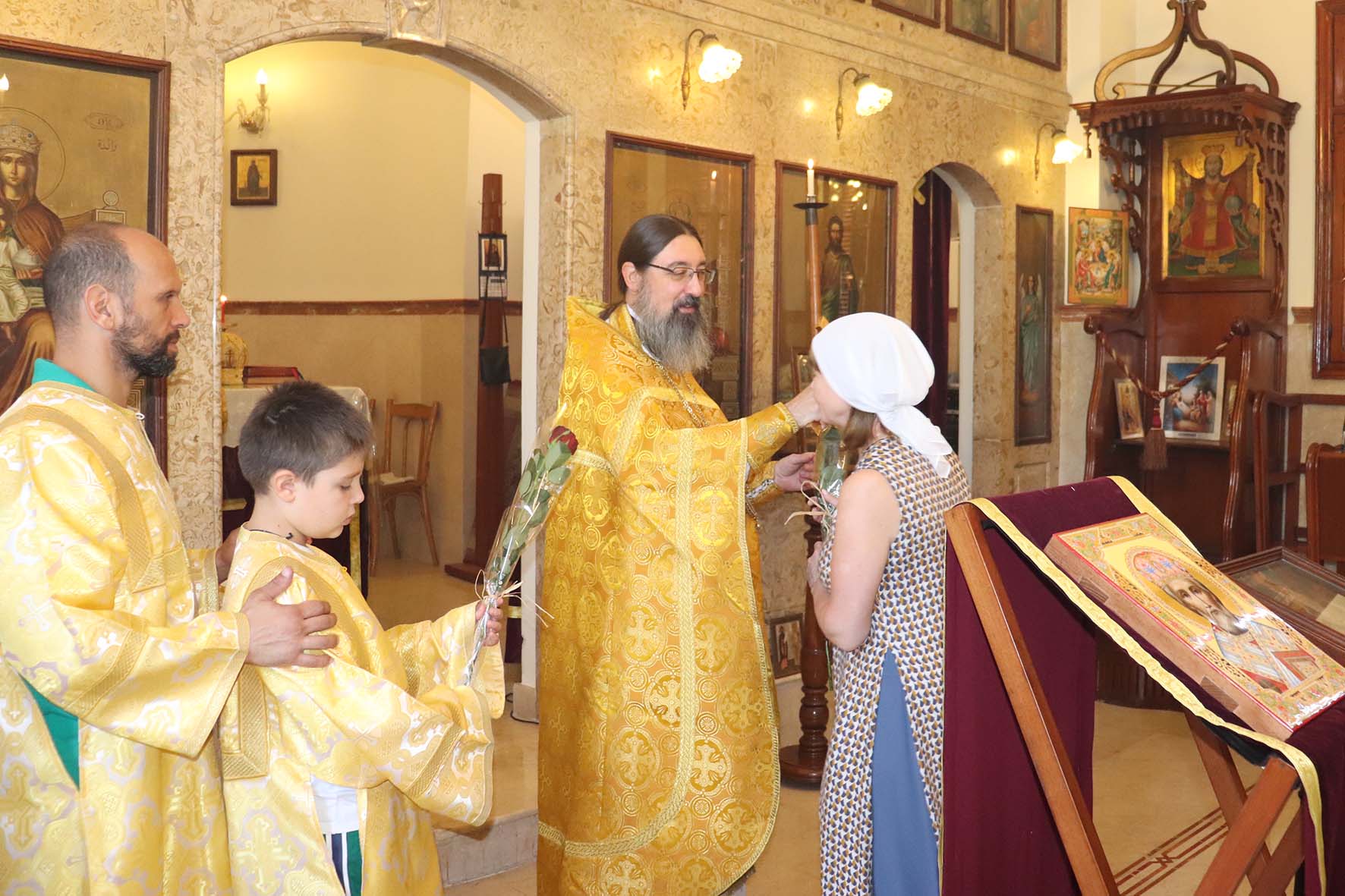 После отпуста Божественной литургии настоятель поздравил с днём Тезоименитства всех прихожанок Подворья, носящих имя в честь св.мч. Наталии и провозгласил им многолетие. Затем архимандрит подарил по букету цветов присутствующим в храме прихожанкам, празднующим день Тезоименитства.
