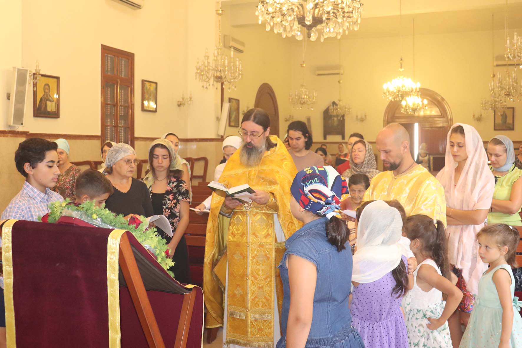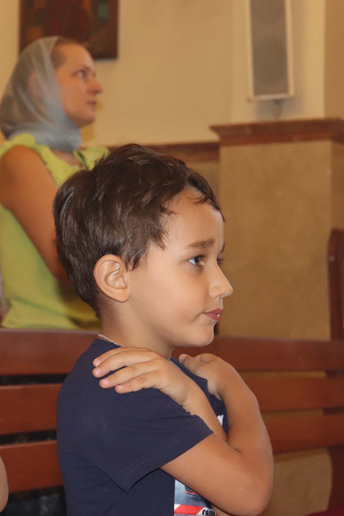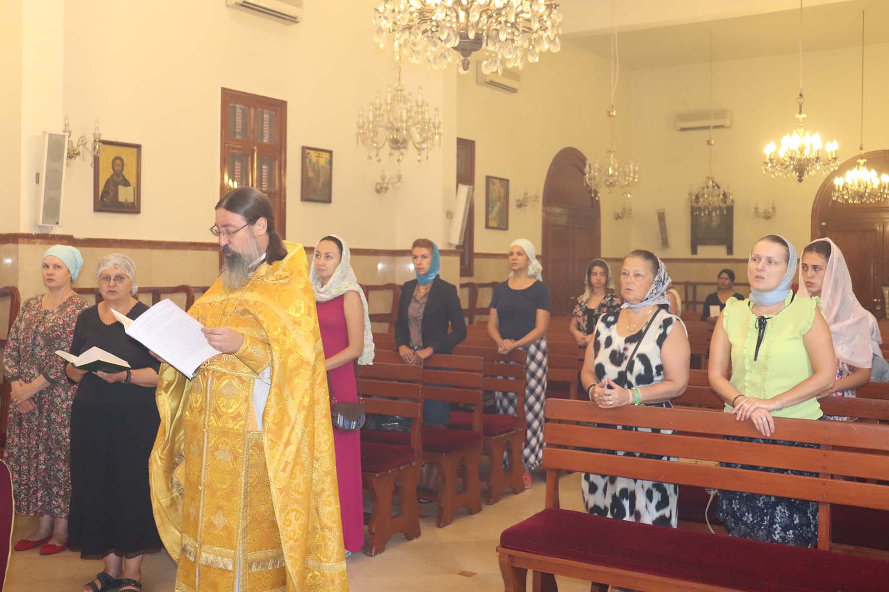 После отпуста Божественной литургии был совершен молебен перед началом учения отроков. После окончания молебна настоятель тепло приветствовал учащих и учащихся Воскресной школы, а также поздравил с Днём Тезоименитства сотрудницу Подворья Л. Аон и подарил ей букет цветов.