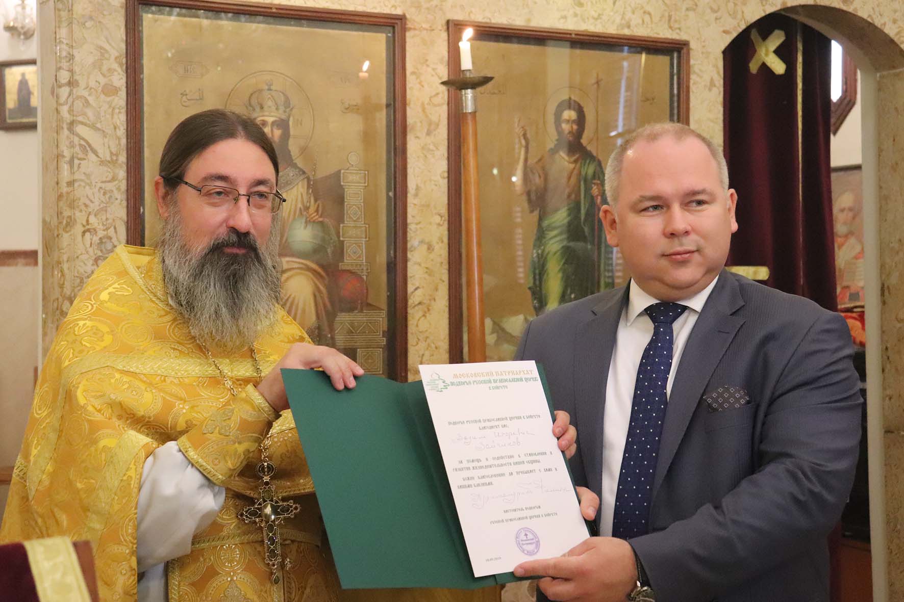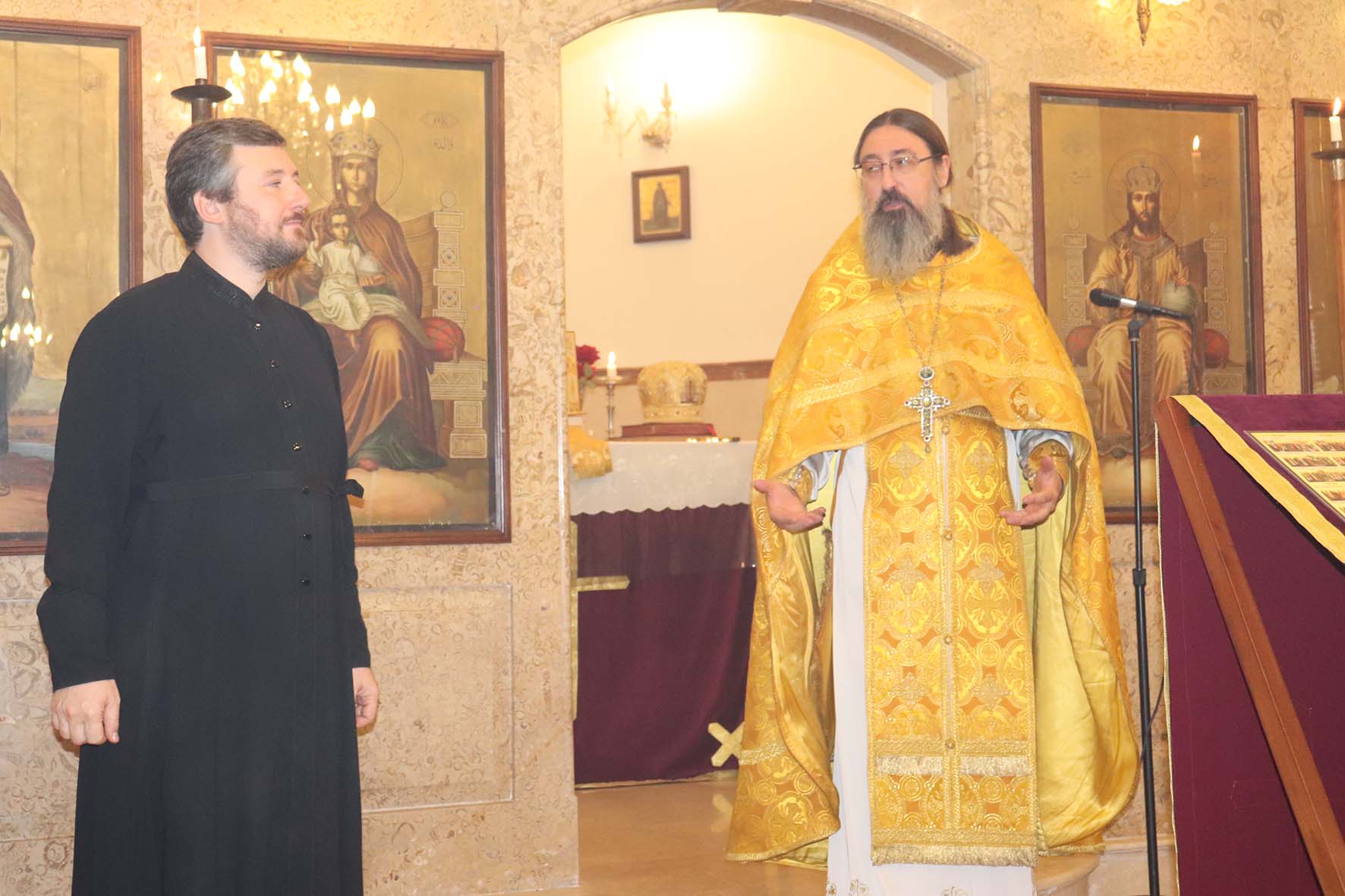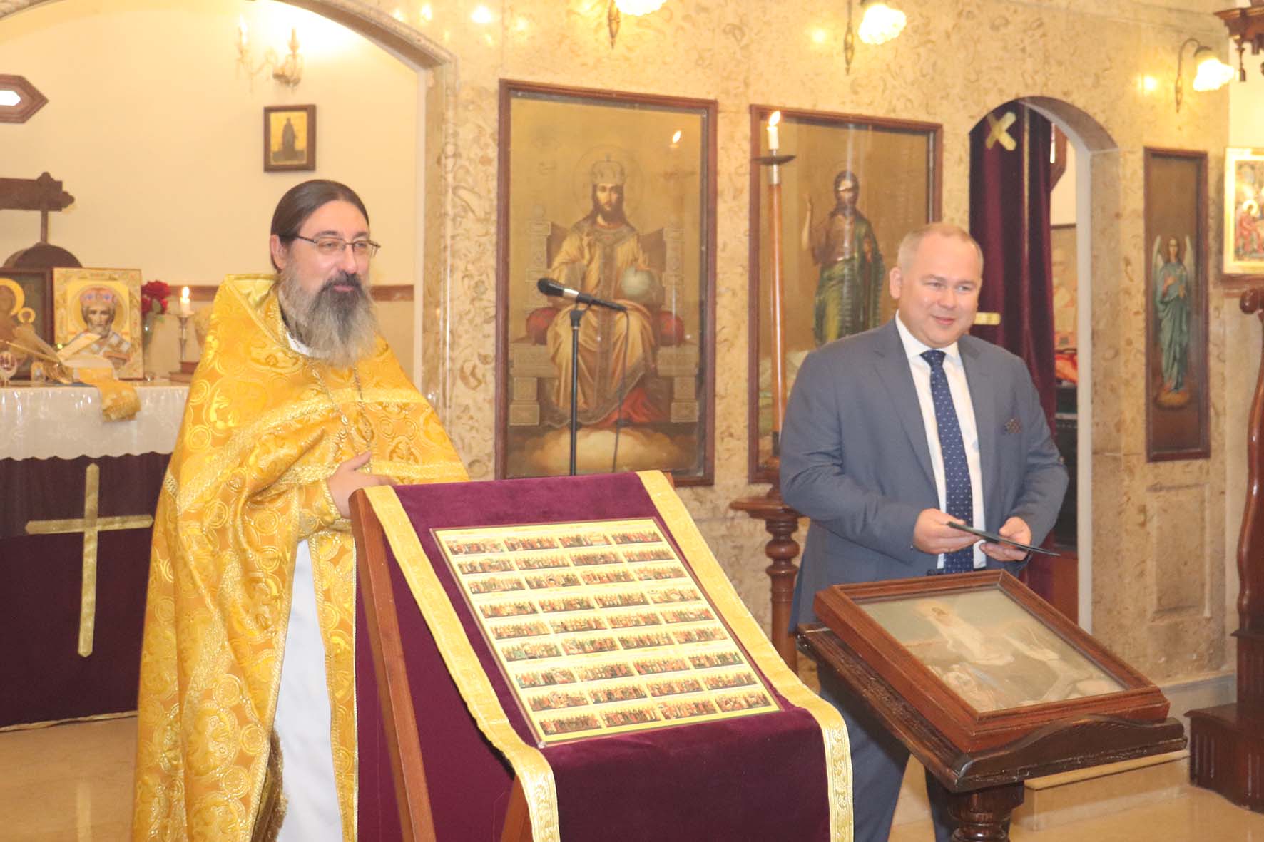 После отпуста Божественной литургии было совершено славление празднику зачатия святого Пророка Предтечи Крестителя Господня Иоанна. Затем архимандрит Филипп вручил благодарственную грамоту Подворья директору российского центра науки и культуры в Бейруте Зайчикову Вадиму Игоревичу за помощь и содействие Подворью Русской Православной Церкви. Настоятель подворья представил прихожанам диакона Илию Кокина и рассказал о его книгоиздательской и просветительской деятельности.