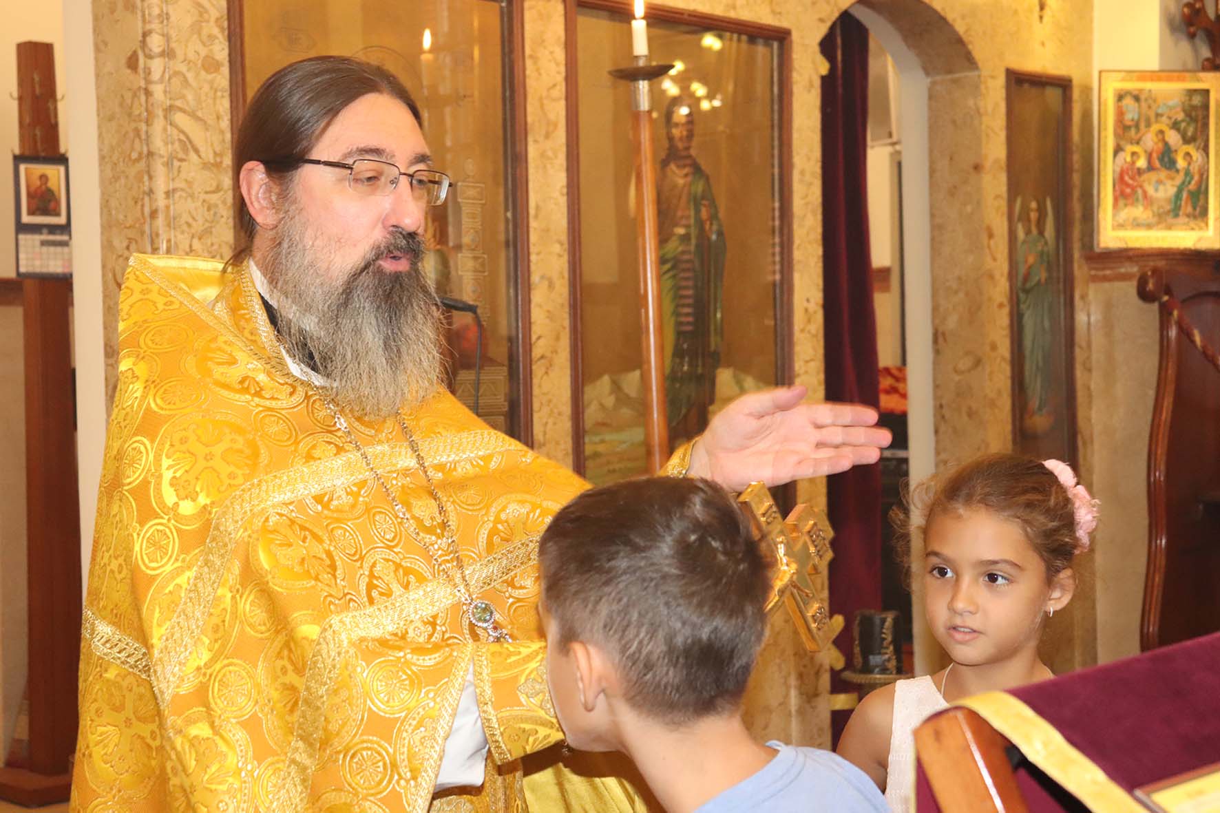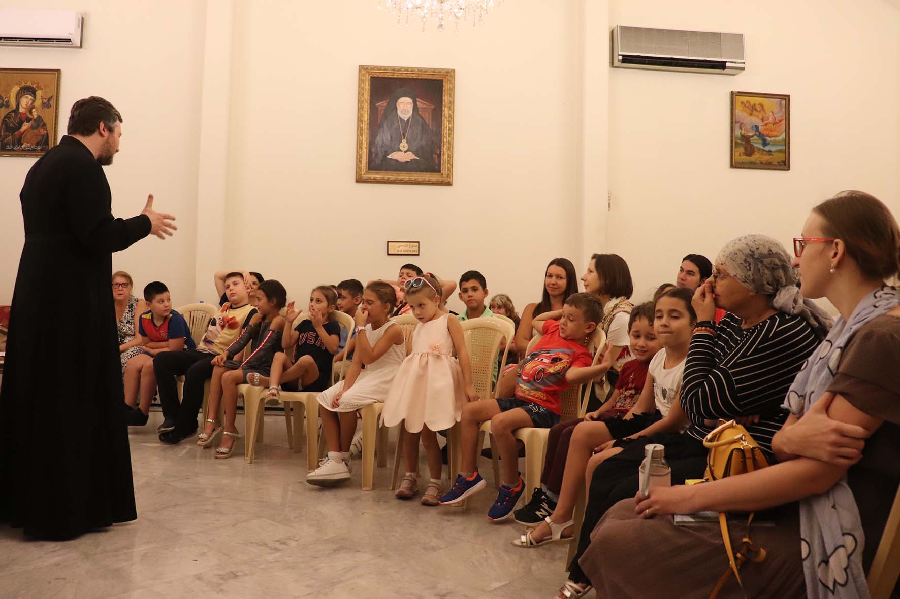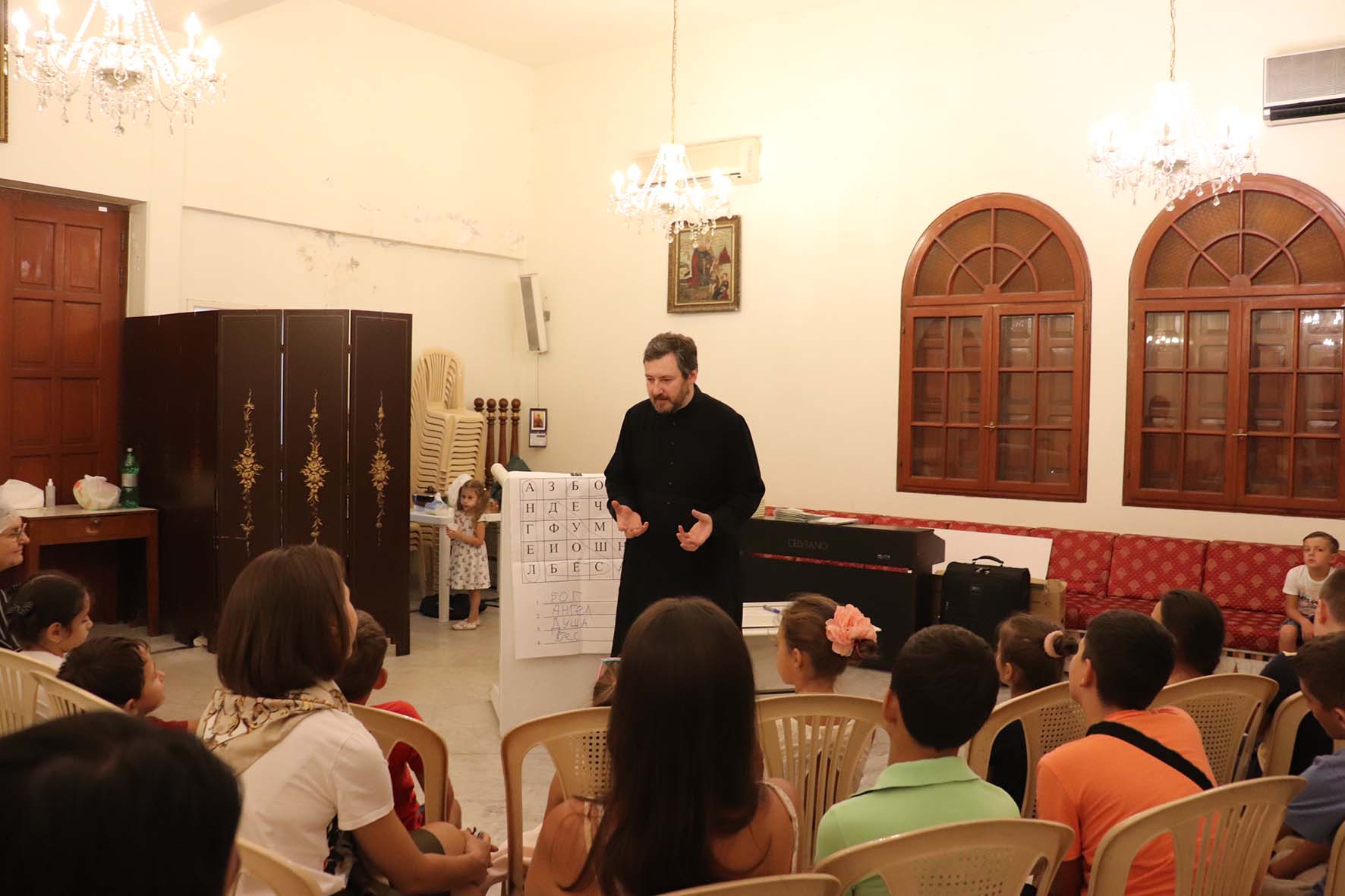 После окончания богослужения в приходском зале при храме св. Иоанна Предтечи состоялась беседа диакона Илии Кокина с воспитанниками воскресной школы при Подворье Русской Православной Церкви в Бейруте.