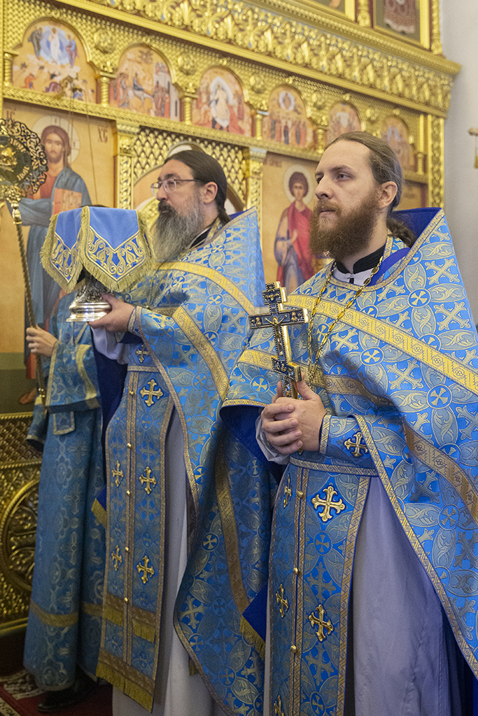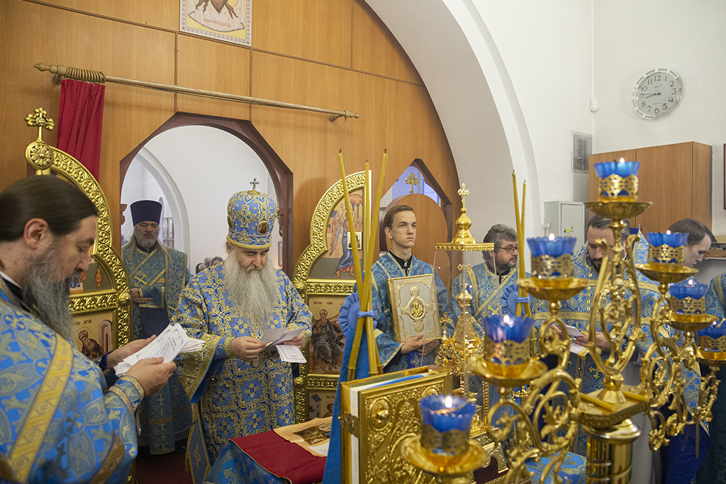 Его Высокопреосвященству сослужили архимандрит Филипп (Васильцев), благочинный Всехсвятского округа протоиерей Александр Домрачев, настоятель храма иерей Владимир Жилкин, иерей Димитрий Зимин, протодиакон Александр Пушкарев, протодиакон Олег Дроздов.