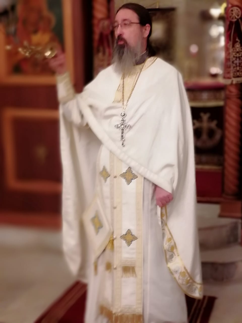 После окончания богослужения архимандрит Филипп поблагодарил иерея Николая за возможность совершить богослужение и передал ему памятный подарок.