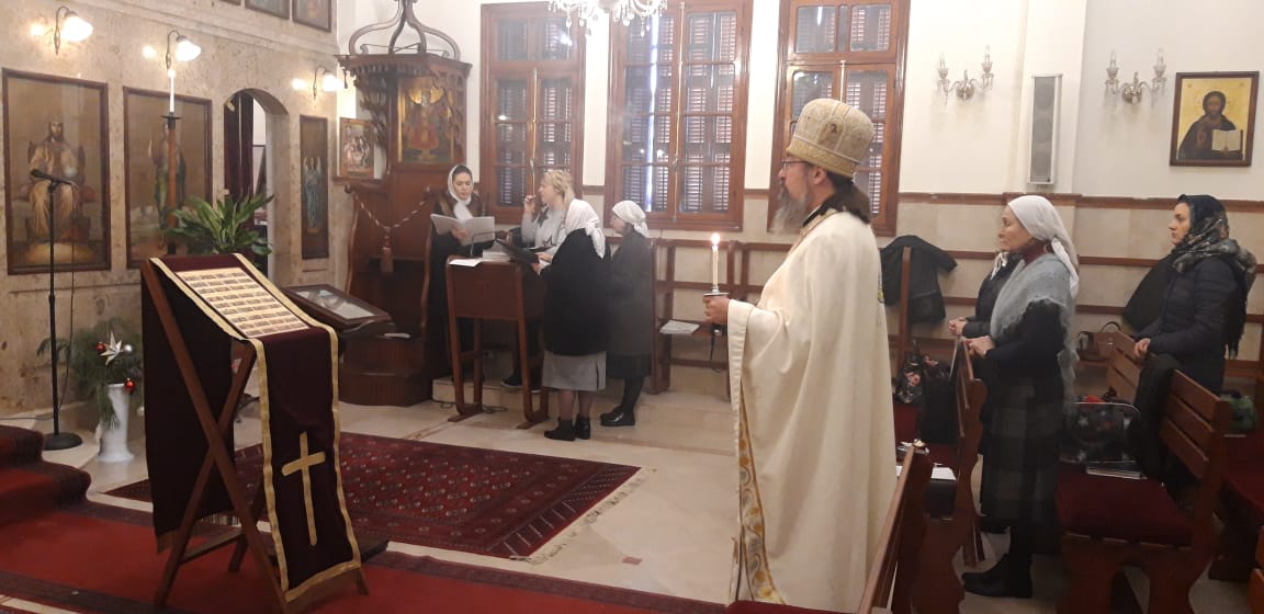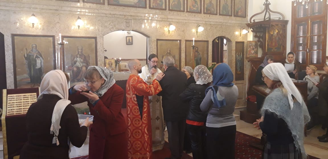 После отпуста Божественной литургии настоятель объявил расписание богослужений на ближайшую седмицу и паломническую поездку в Дамаск на Великий двунадесятых праздник Сретения Господня 15 февраля.