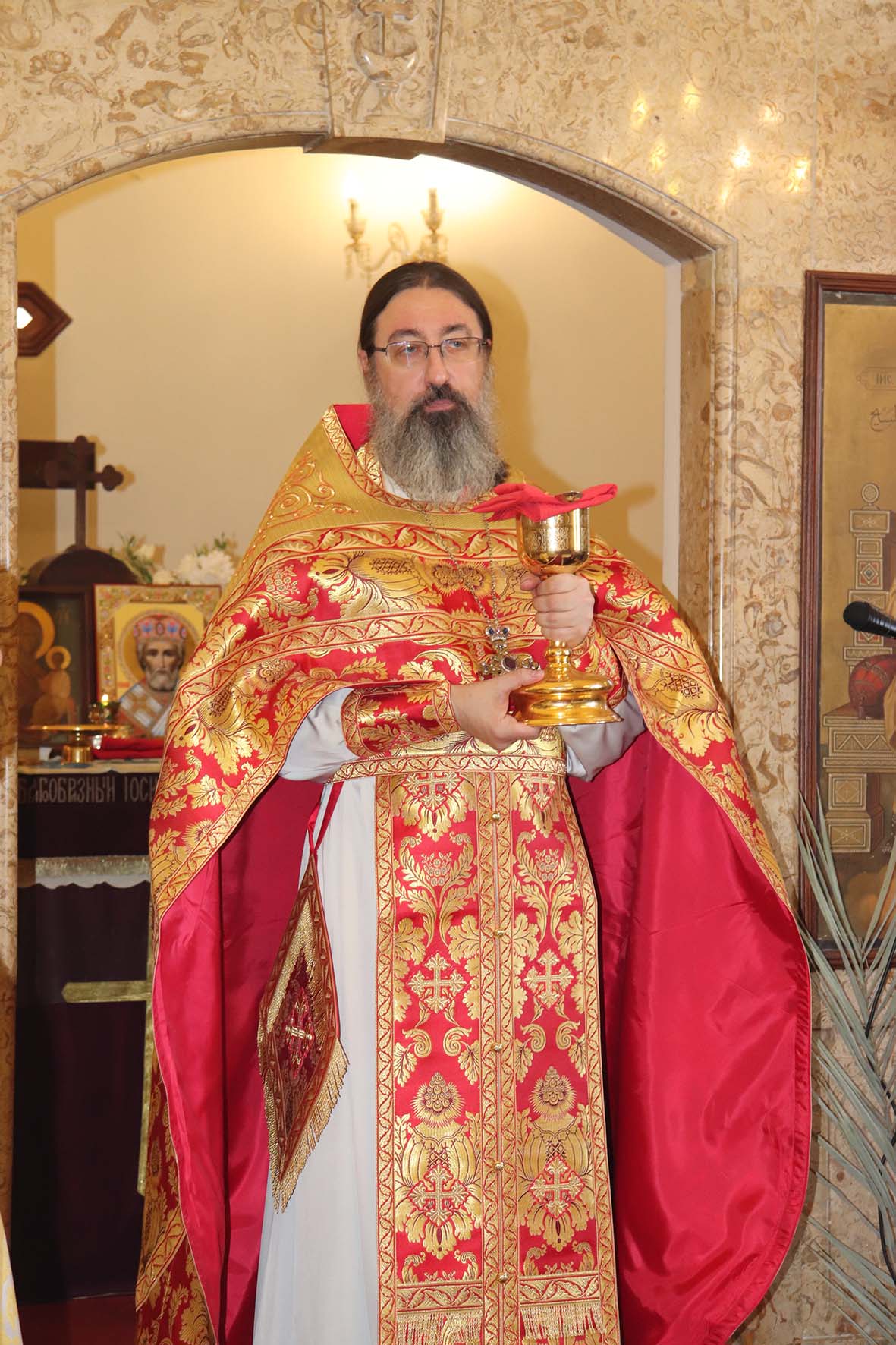 После сугубой ектении настоятель Подворья вознес молитву о мире на Украине, молитву во время распространения вредоносного поветрия чтомую.