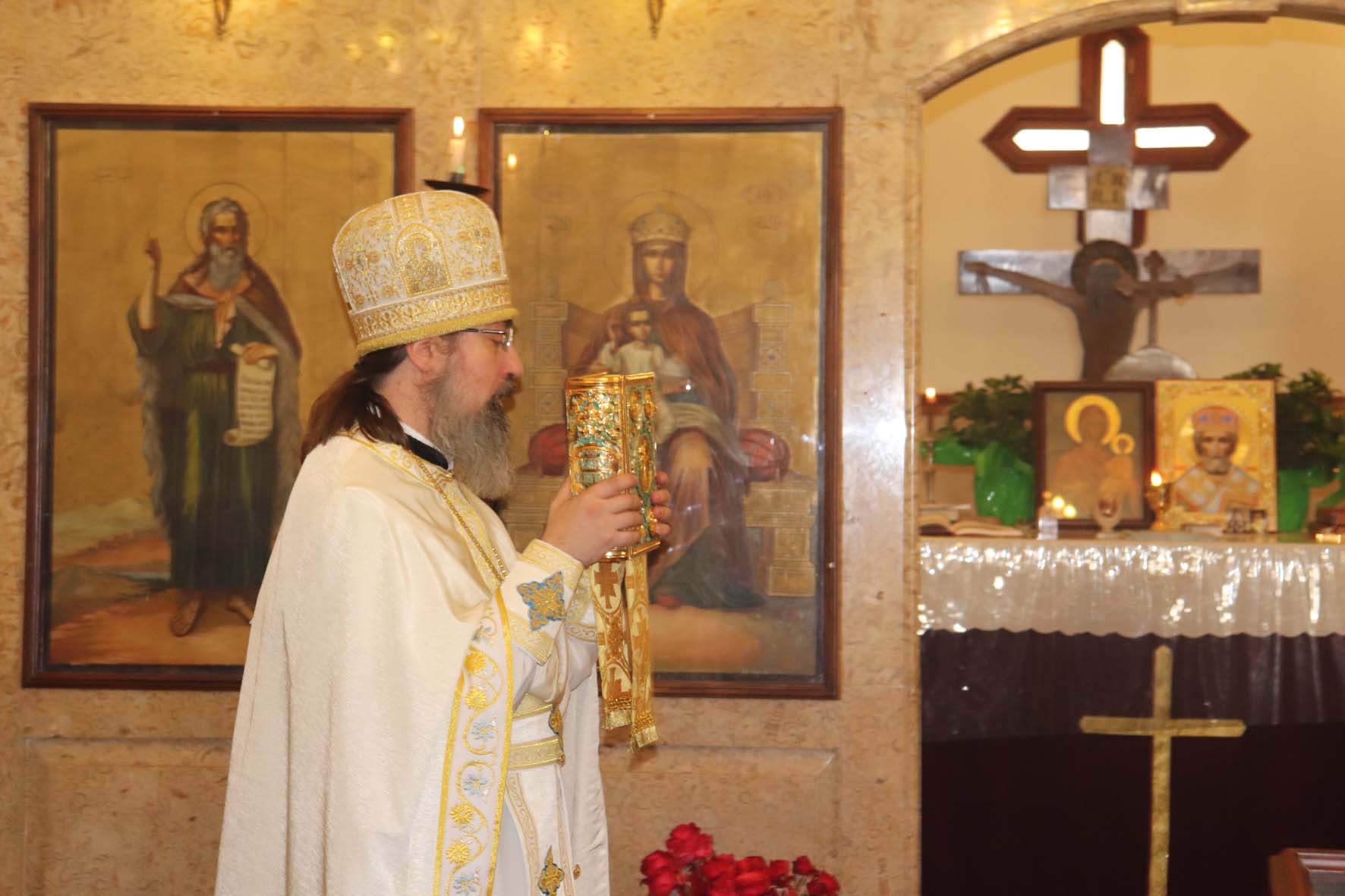 После сугубой ектении были вознесены молитва о мире на Украине, а также молитвенные прошения об избавлении от коронавирусной инфекции, прошения о здравии и крепости духа врачей и исцелении заболевших людей.