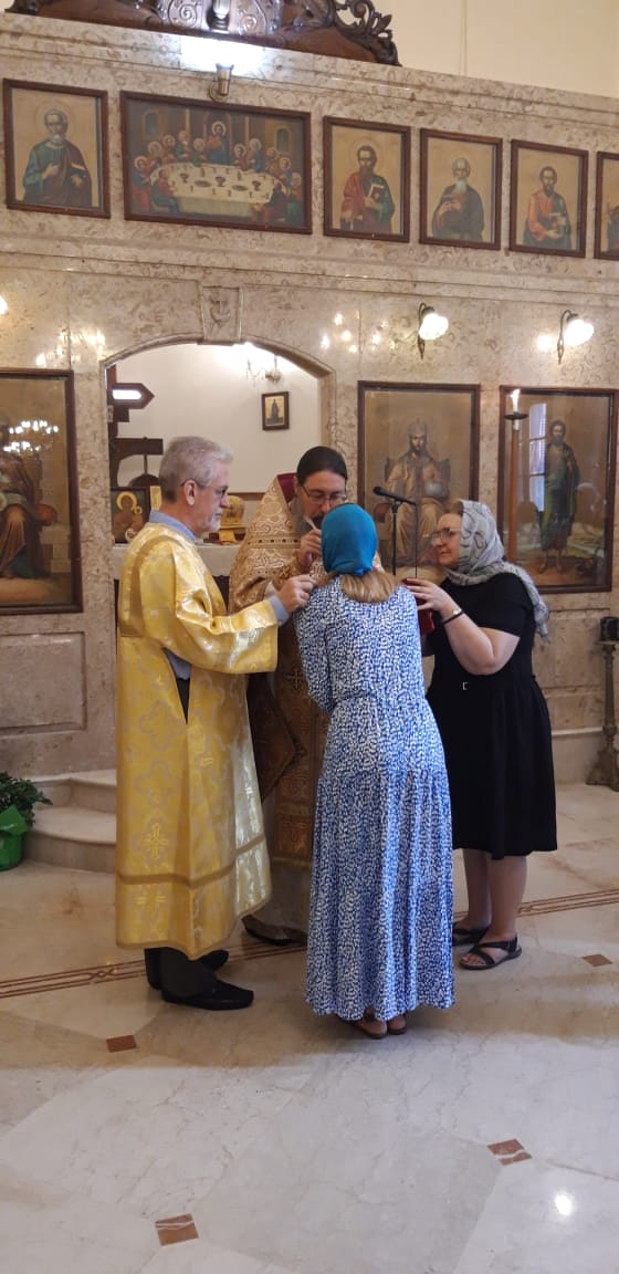 После окончания богослужения настоятель сердечно поздравил с Днём рождения постоянную прихожанку и сотрудницу Подворья Юлию Паламарчук, подарил ей памятные подарки, букет цветов и провозгласил многолетие.