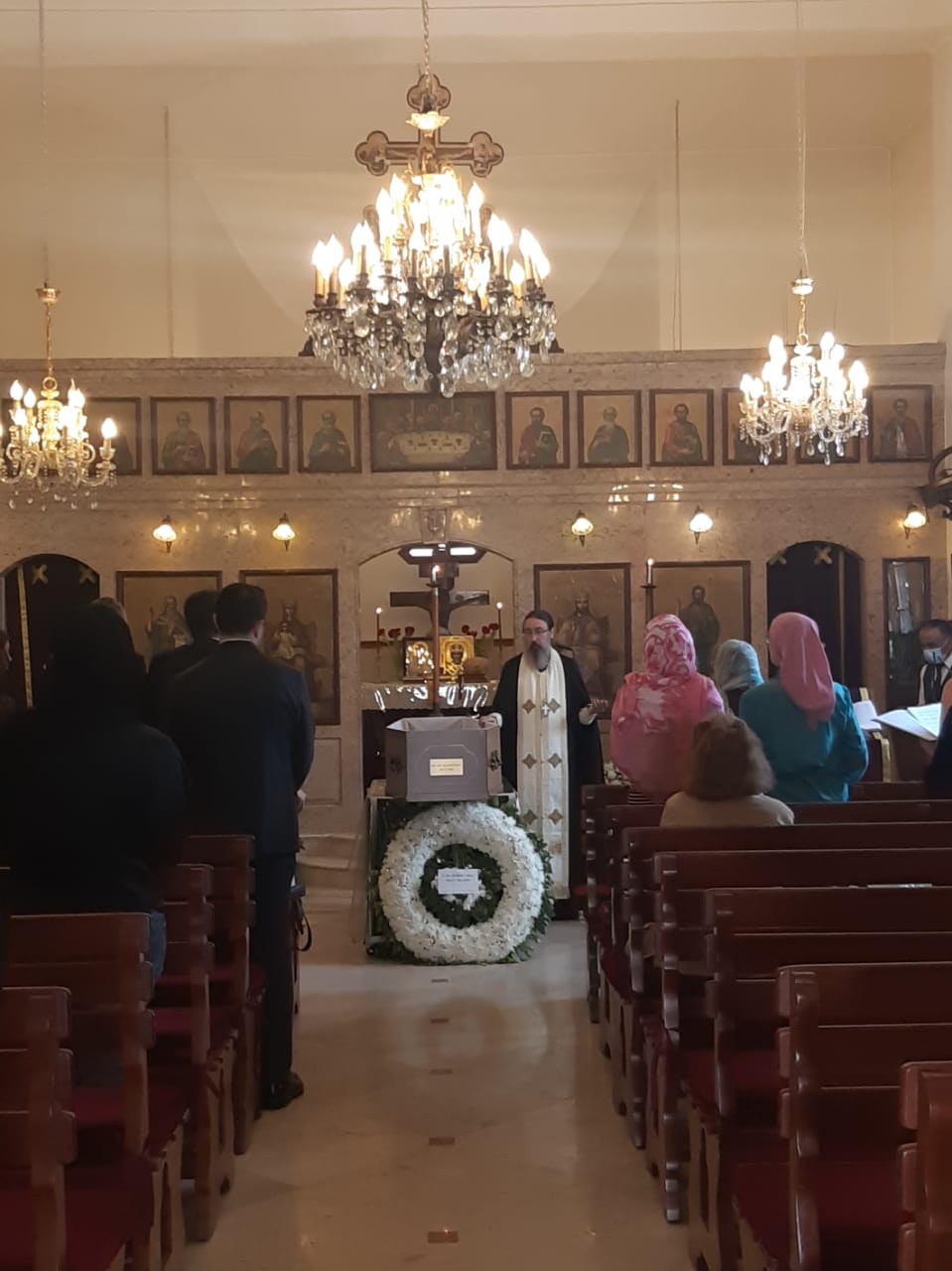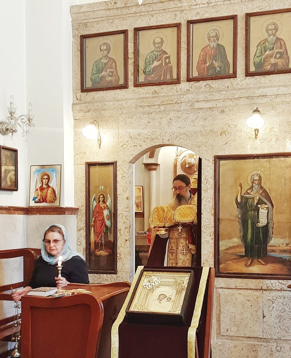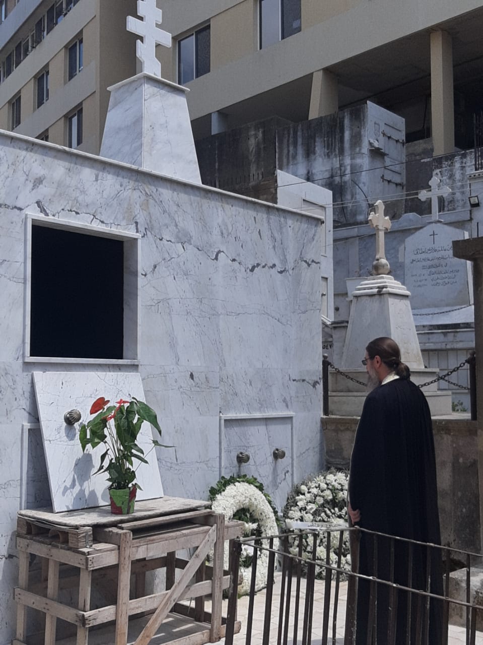 Затем состоялось отпевание постоянной прихожанки Подворья новопреставленной рабы Божией Зинаиды. Новопреставленная Зинаида Ивановна Балабанова была погребена на православном кладбище Ашрафии в общей могиле Подворья Русской Православной Церкви.