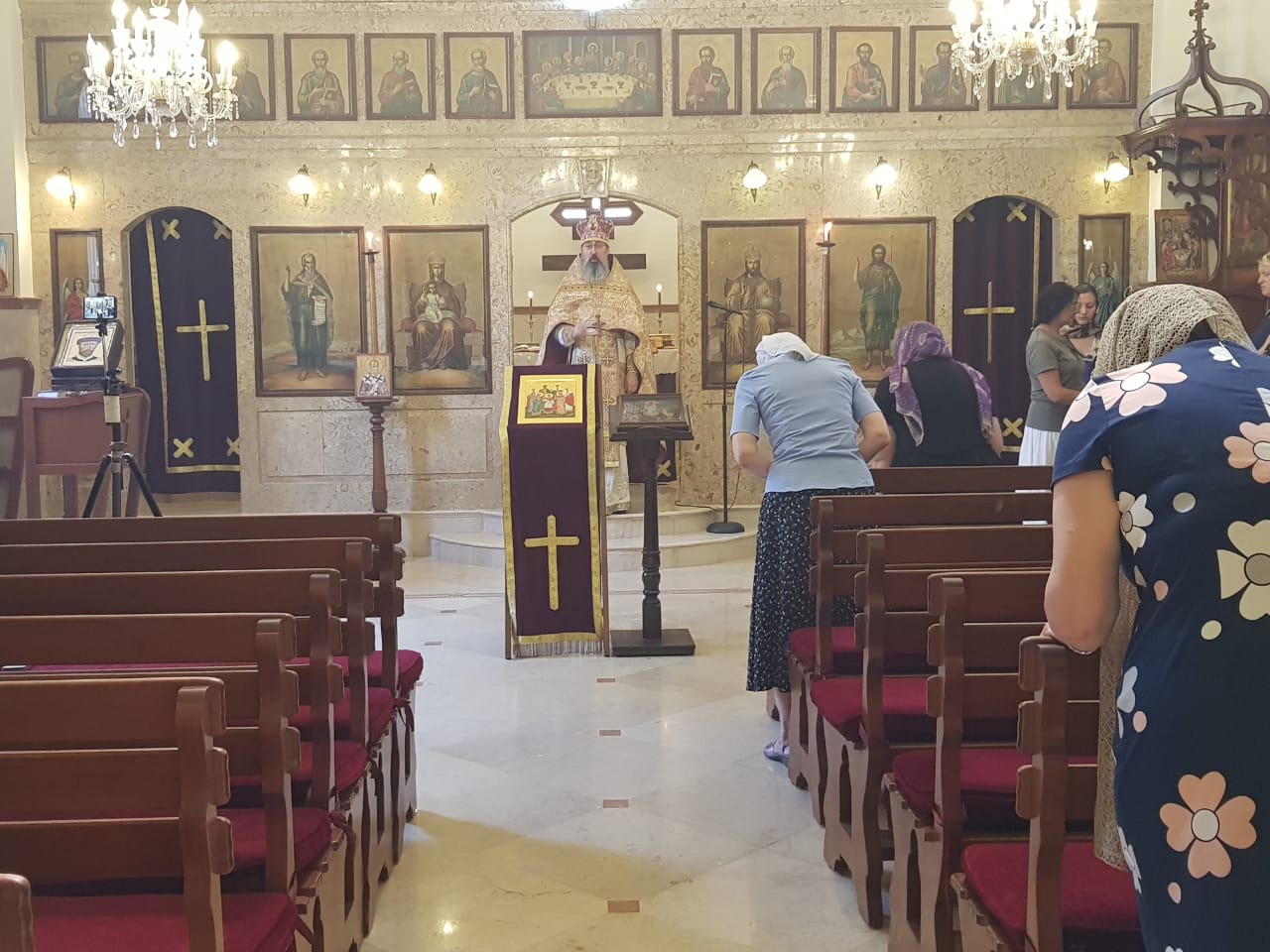 В пятницу, 17 июля, в день памяти святых царственных страстотерпцев Божественную литургию в храме св. Иоанна Предтечи совершил архимандрит Филипп в сослужении дьякона Максима Сабах.