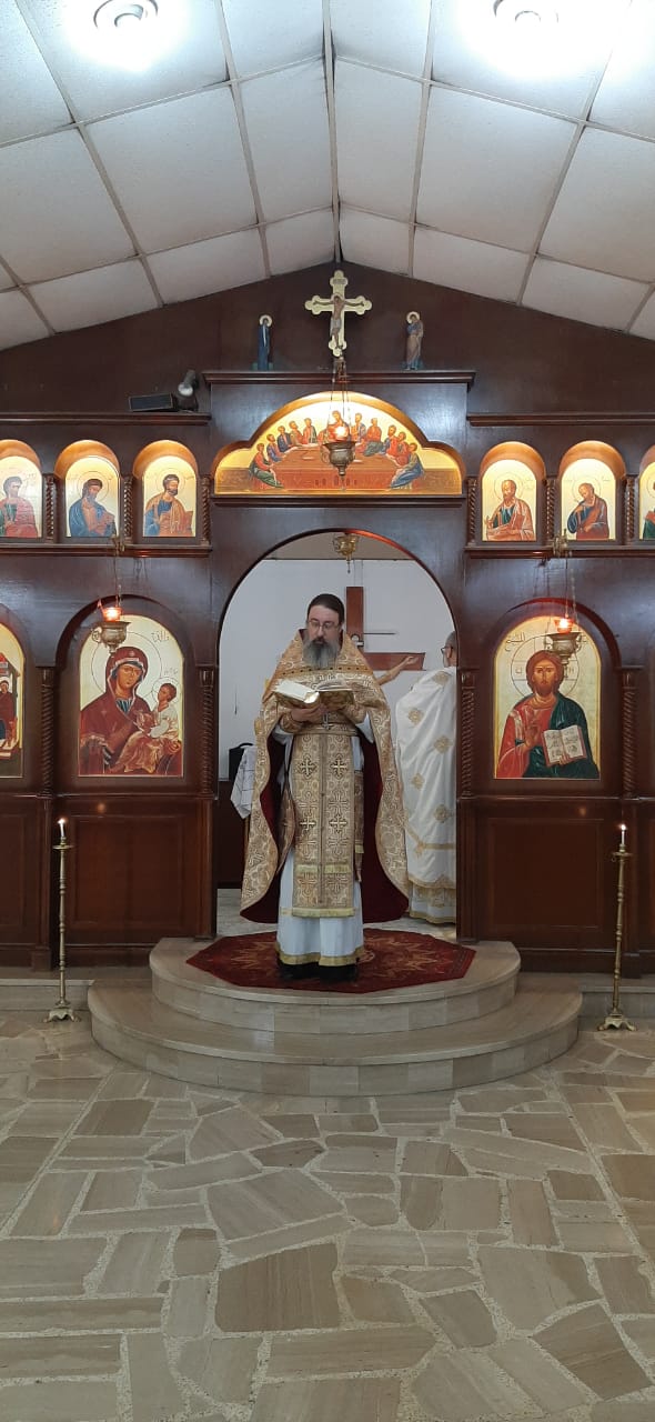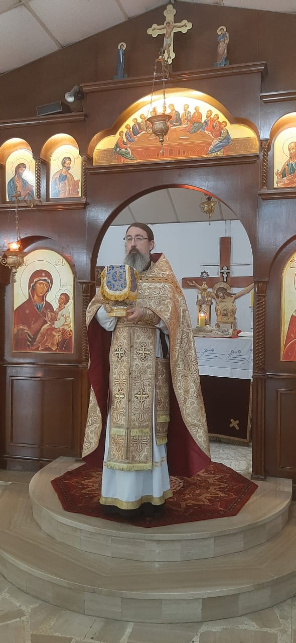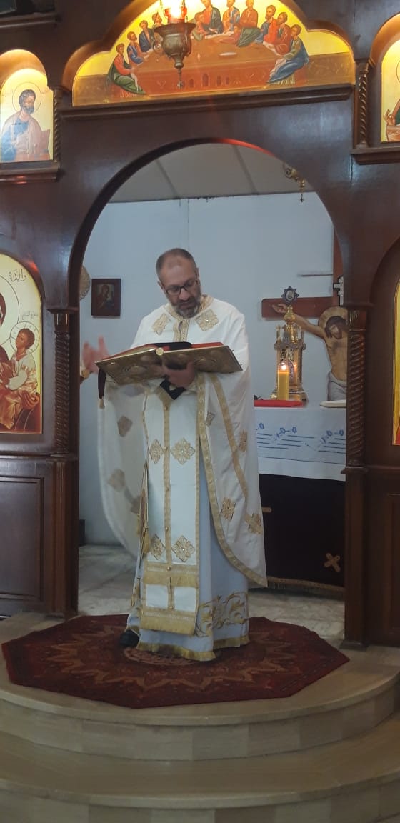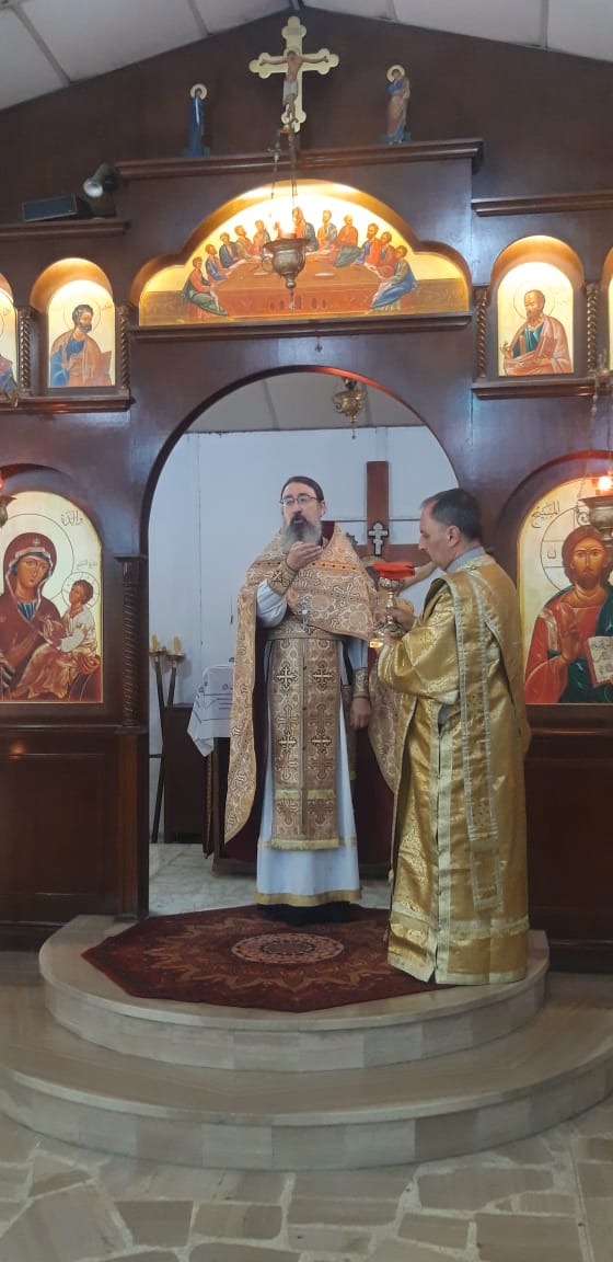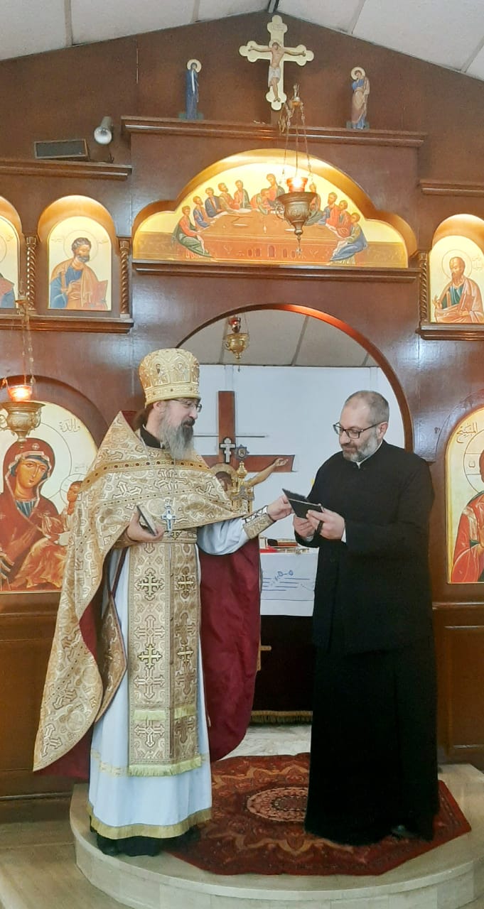После отпуста Божественной литургии архимандрит Филипп приветствовал протоиерея Булоса, поздравил его с прошедшим Днём Тезоименитства и подарил памятные подарки.