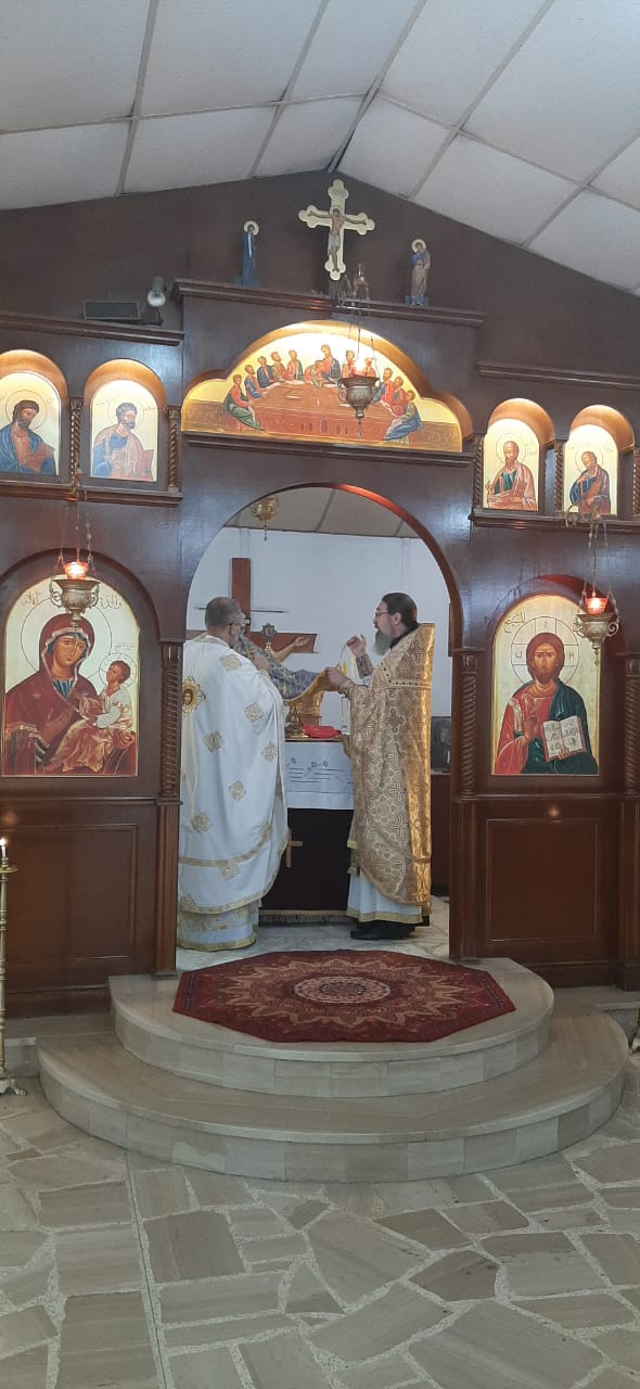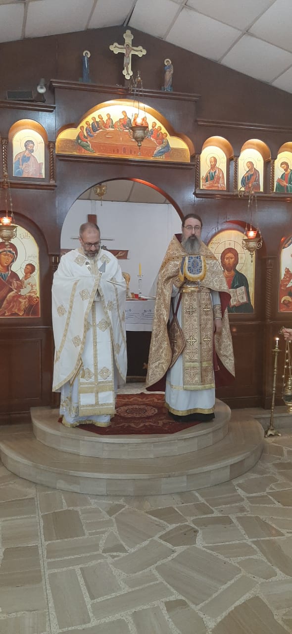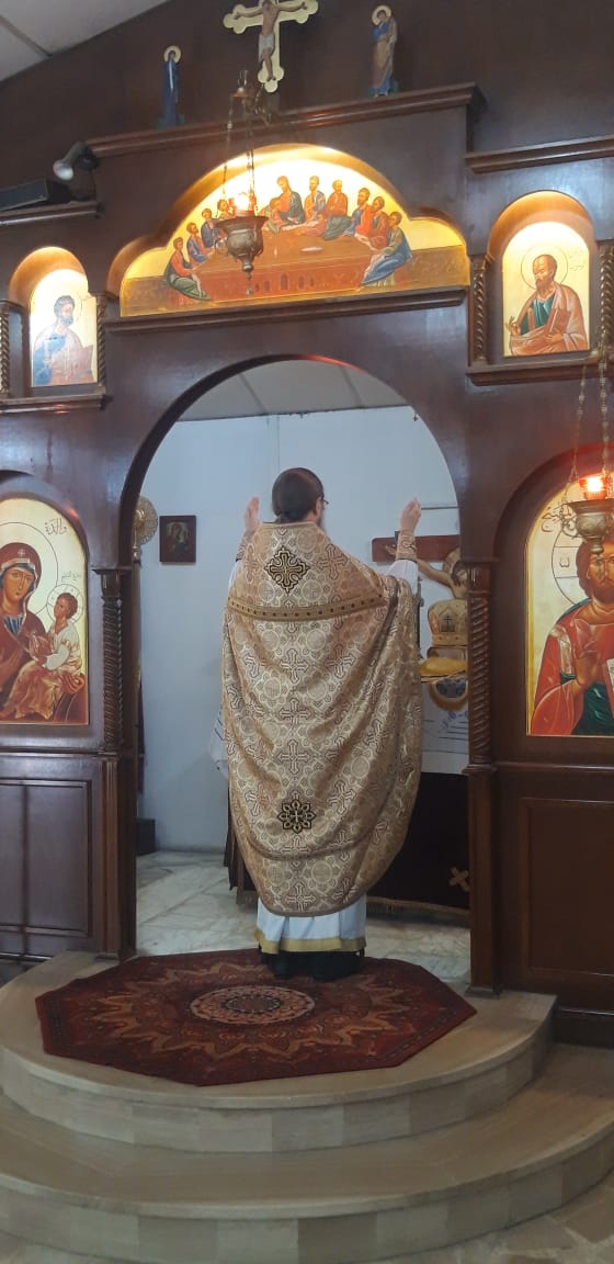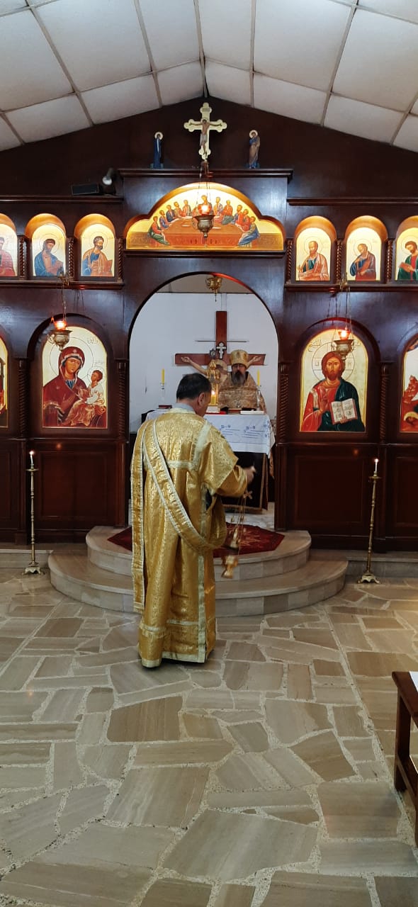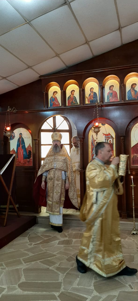 После отпуста Божественной литургии архимандрит Филипп приветствовал протоиерея Булоса, поздравил его с прошедшим Днём Тезоименитства и подарил памятные подарки.