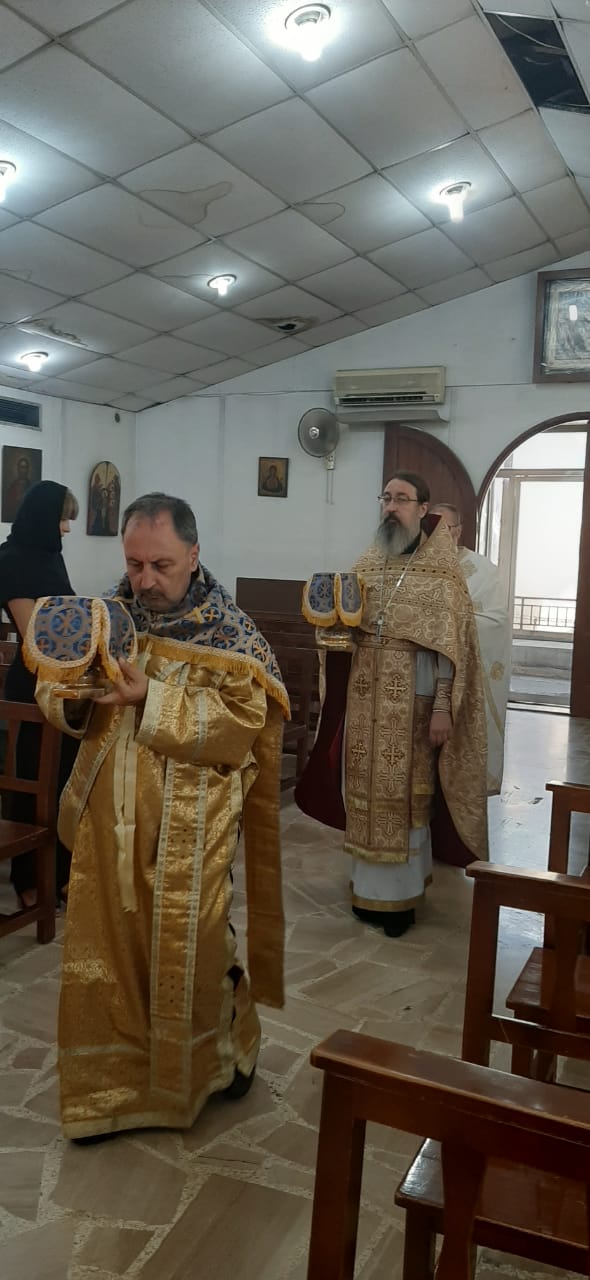 В четверг, 23 июля, в праздник положения честной ризы Господа нашего Иисуса Христа в Москве Божественную литургию в храме Благовещения Пресвятой Богородицы в Жаль Эль Диб возглавил архимандрит Филипп в сослужении настоятеля храма Пресвятой Богородицы г. Библос протоиерея Булоса Джаббур и диакона Максима Сабах.