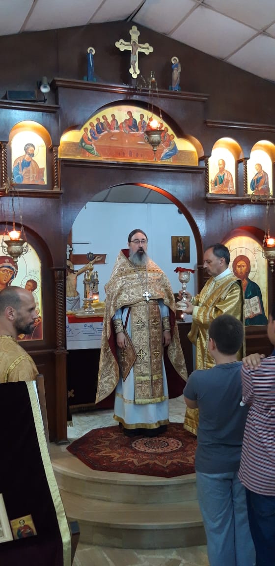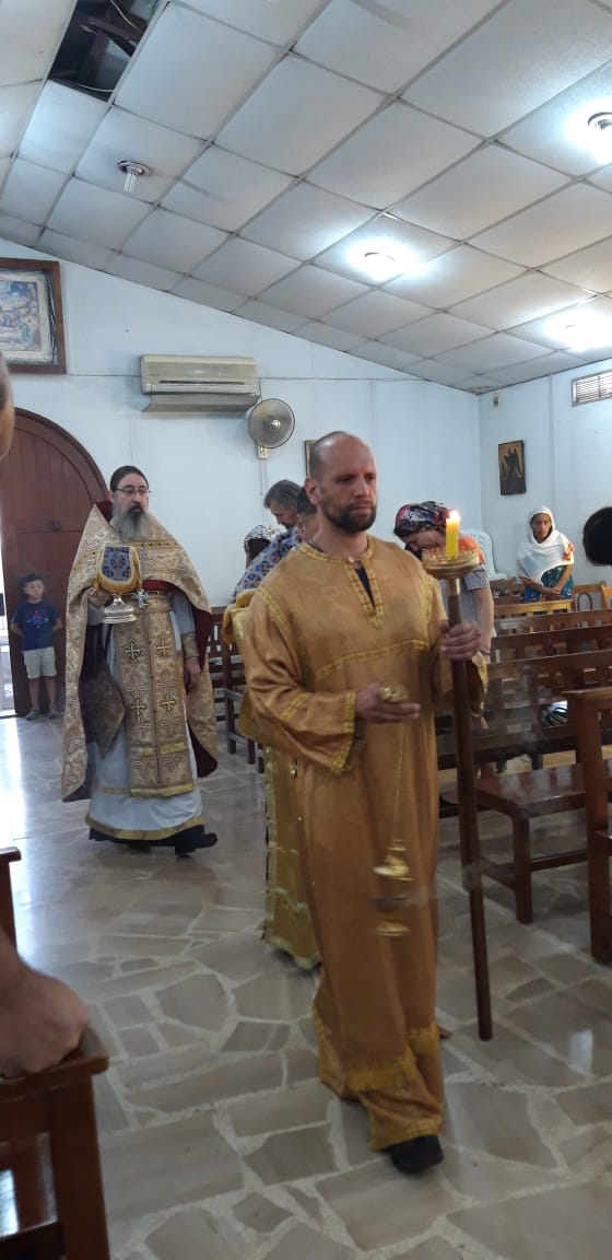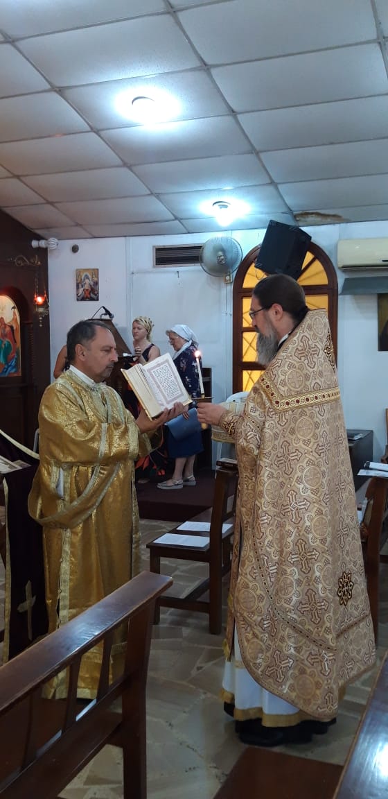 В воскресенье, 9 августа, в день памяти святого вмч. и целителя Пантелеимона Воскресную Утреню и Божественную литургию в храме Благовещения Пресвятой Богородицы в Жаль Эль Диб совершил архимандрит Филипп в сослужении дьякона Максима Сабах.