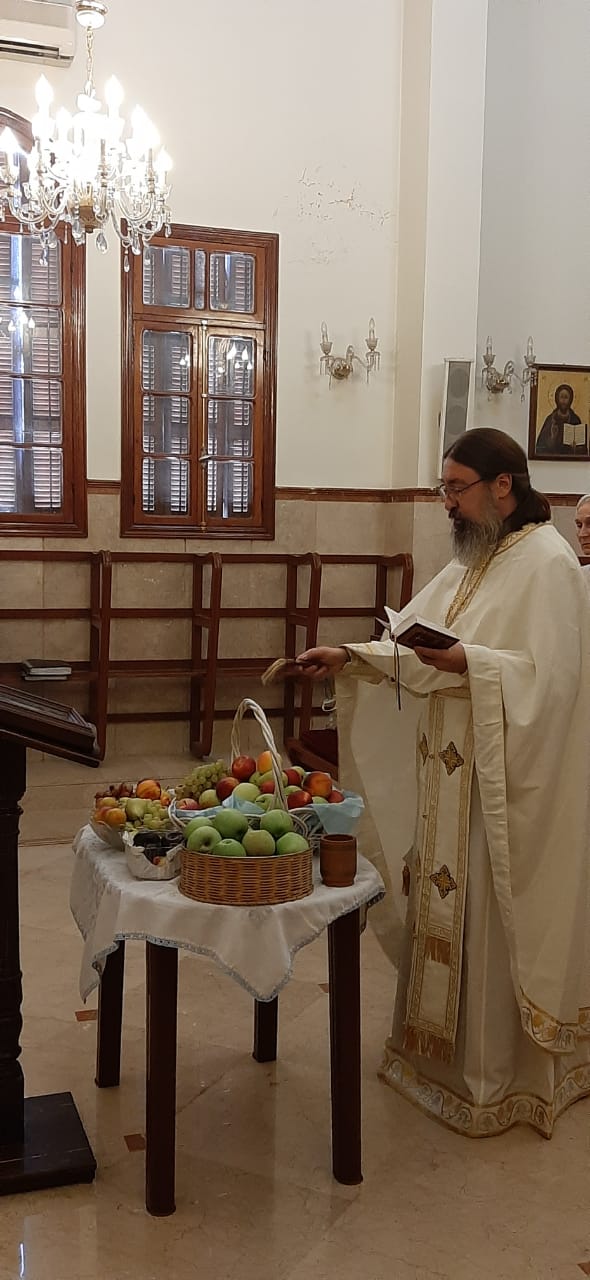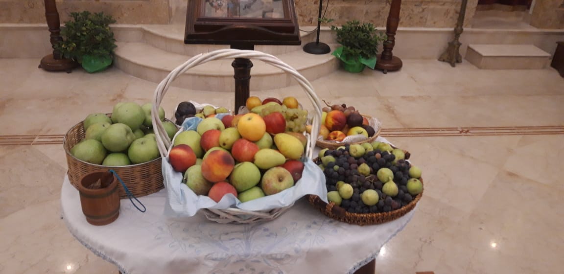 По заамвонной молитве настоятель совершил чин освящения плодов нового урожая.