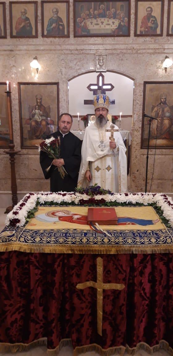 После отпуста Божественной литургии было совершено славление празднику Успения Пресвятой Богородицы.