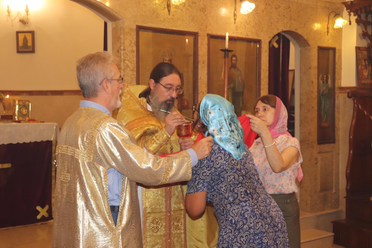 В воскресенье, 6 сентября, в Неделю 13-ю по Пятидесятнице и день памяти перенесения мощей святителя Петра, митрополита Московского, Чудотворца, Божественную литургию в храме св. Иоанна Предтечи совершил архимандрит Филипп в сослужении дьякона Максима Сабах.