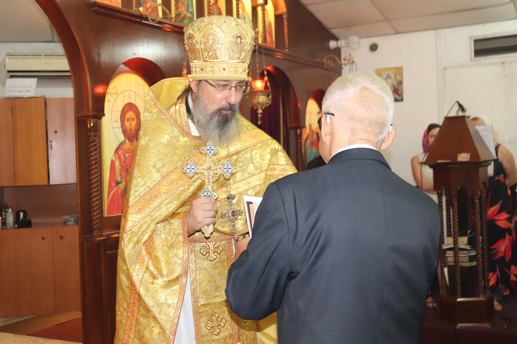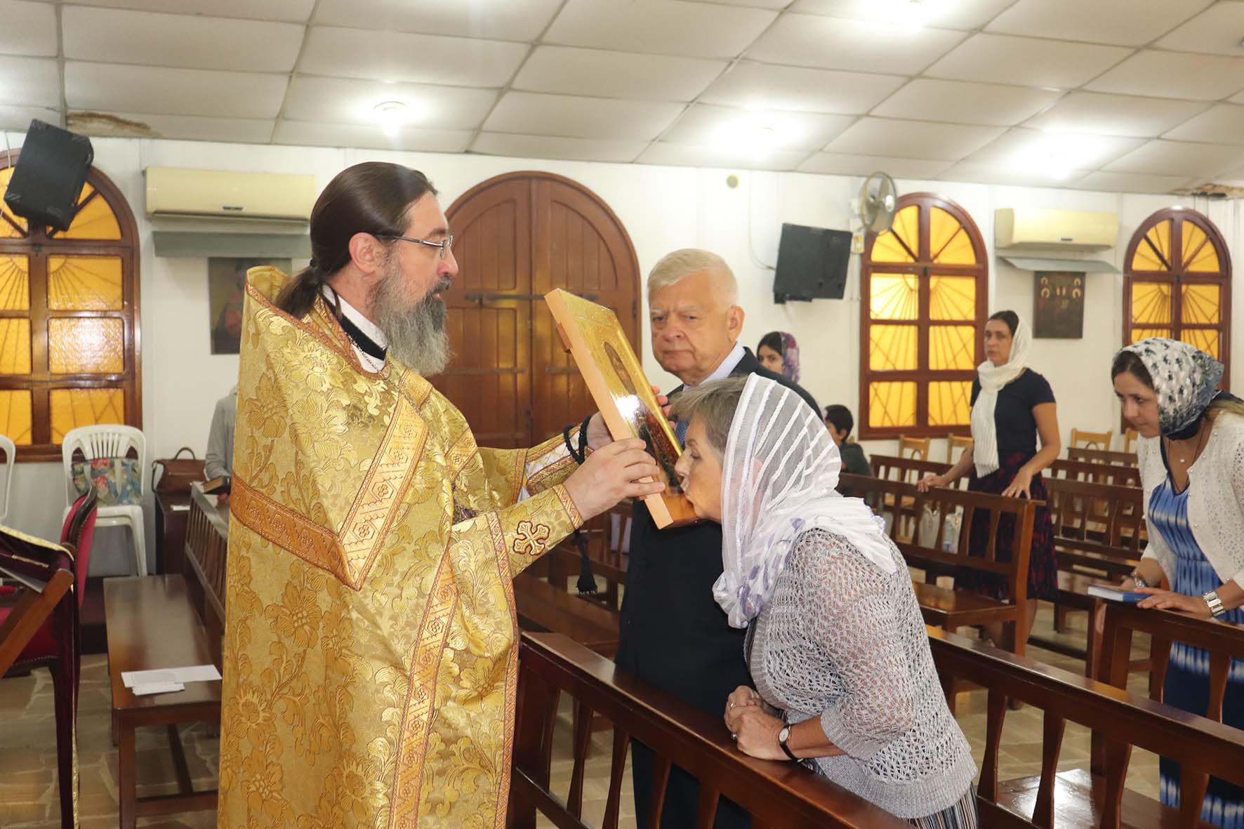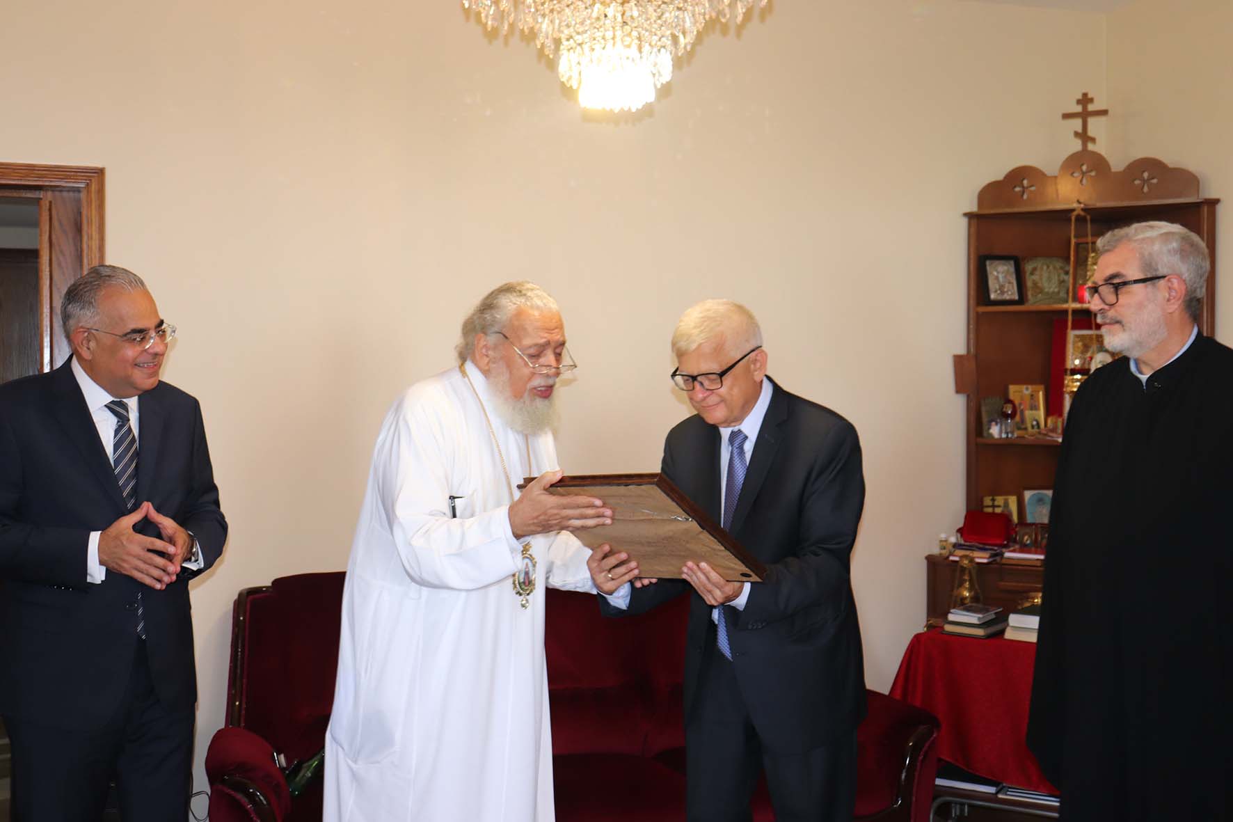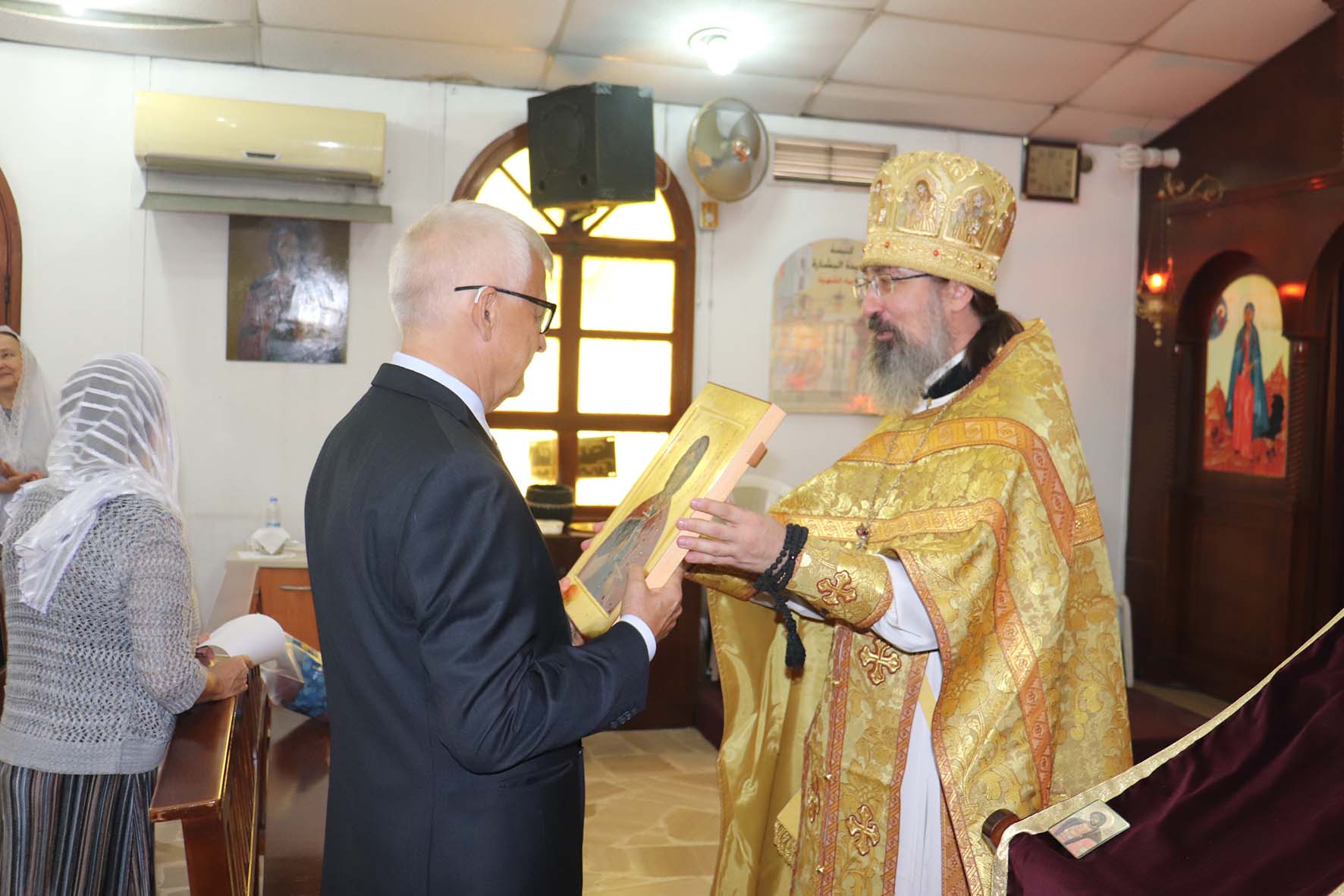 Настоятель Подворья тепло приветствовал господина посла по случаю окончания его миссии в Ливанской Республике и зачитал указ Святейшего Патриарха Московского и всея Руси Кирилла о награждении его орденом св. прп. Сергия Радонежского III степени за активную поддержку деятельности Подворья Русской Православной Церкви в Ливанской Республике.
