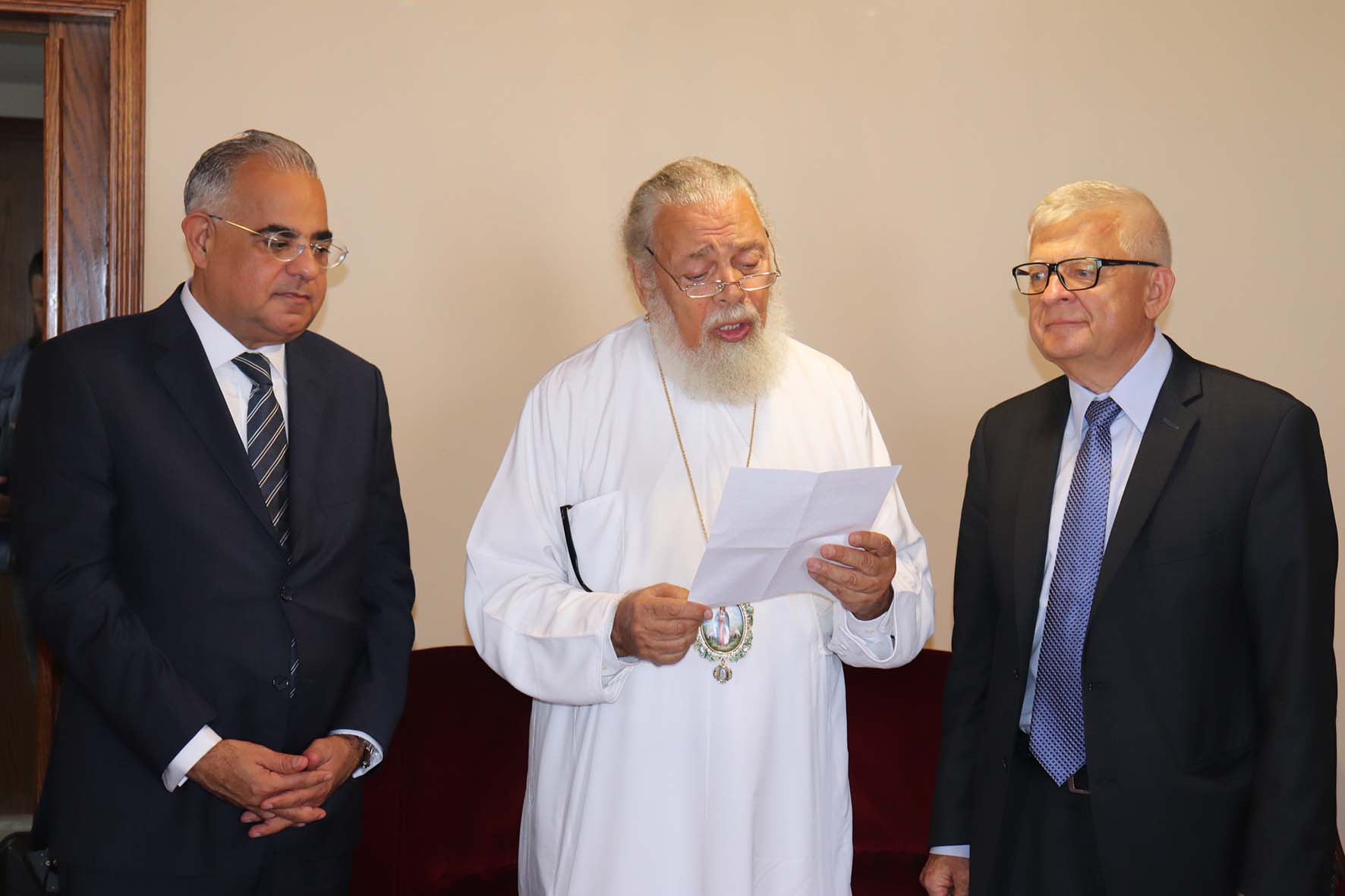 Со словом приветствия к послу Российской Федерации также обратился митрополит Филиппопольский Нифон, который поблагодарил господина Засыпкина долгие годы служения в Ливане, за долгие годы дружбы, которые их связывают и выразил надежду на продолжение братского общения. В своем ответном слове господин посол сказал о главных принципах своего служения в качестве посла России в Ливанской Республике, о важности совместных трудов Церкви и государства и выразил свое желание и в дальнейшем трудиться на благо укрепления дружеских отношений между Россией и Ливаном.