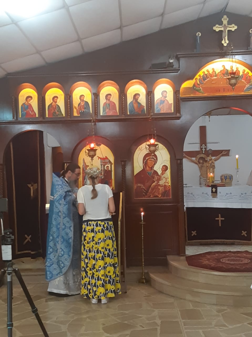 После окончания богослужения настоятель Подворья поздравил с Днём рождения юную прихожанку Подворья Марию Массоуд, подарил ей памятный сувенир и провозгласил ей многолетие.