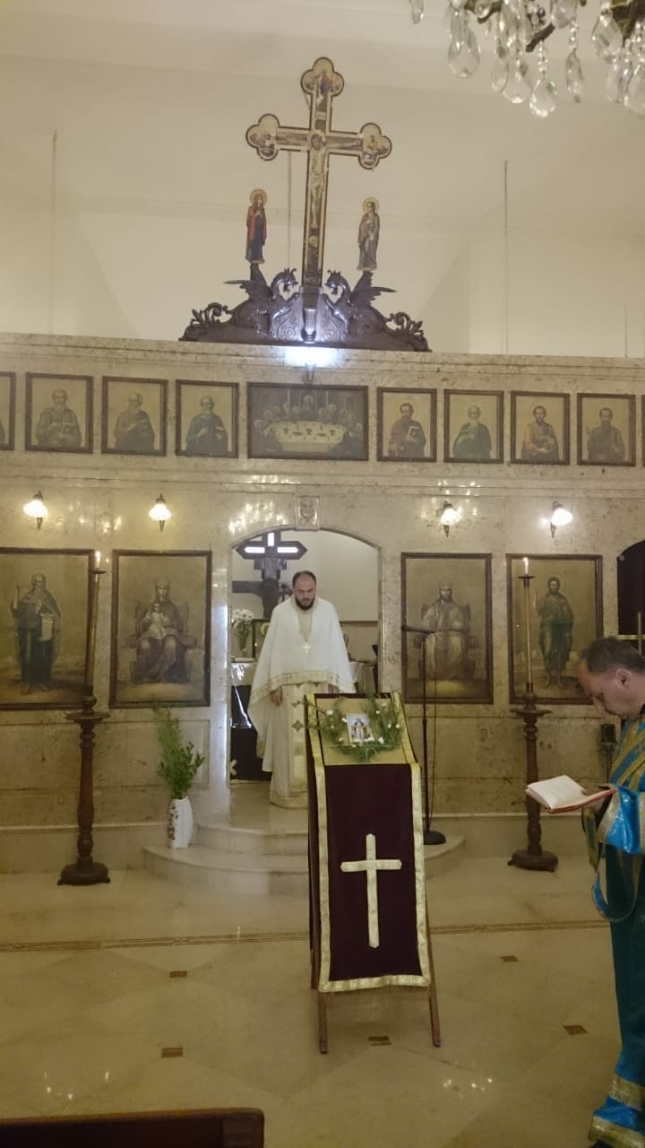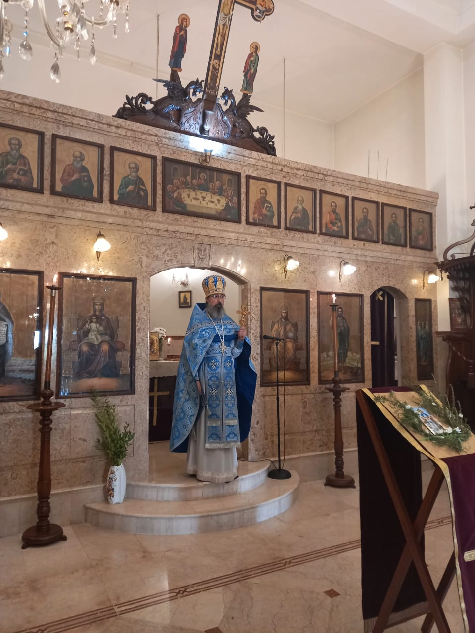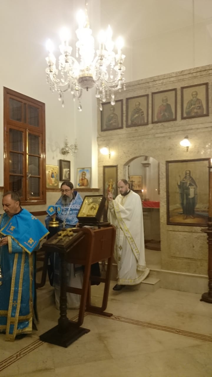 В среду, 14 октября, в праздник Покрова Пресвятой Богородицы утреню и Божественную литургию в храме св. Иоанна Предтечи возглавил архимандрит Филипп в сослужении иерея Виталия Горзова, клирика Киевской митрополии, сотрудника Отдела внешних церковных связей Украинской Православной Церкви Московского Патриархата и дьякона Максима Сабах.