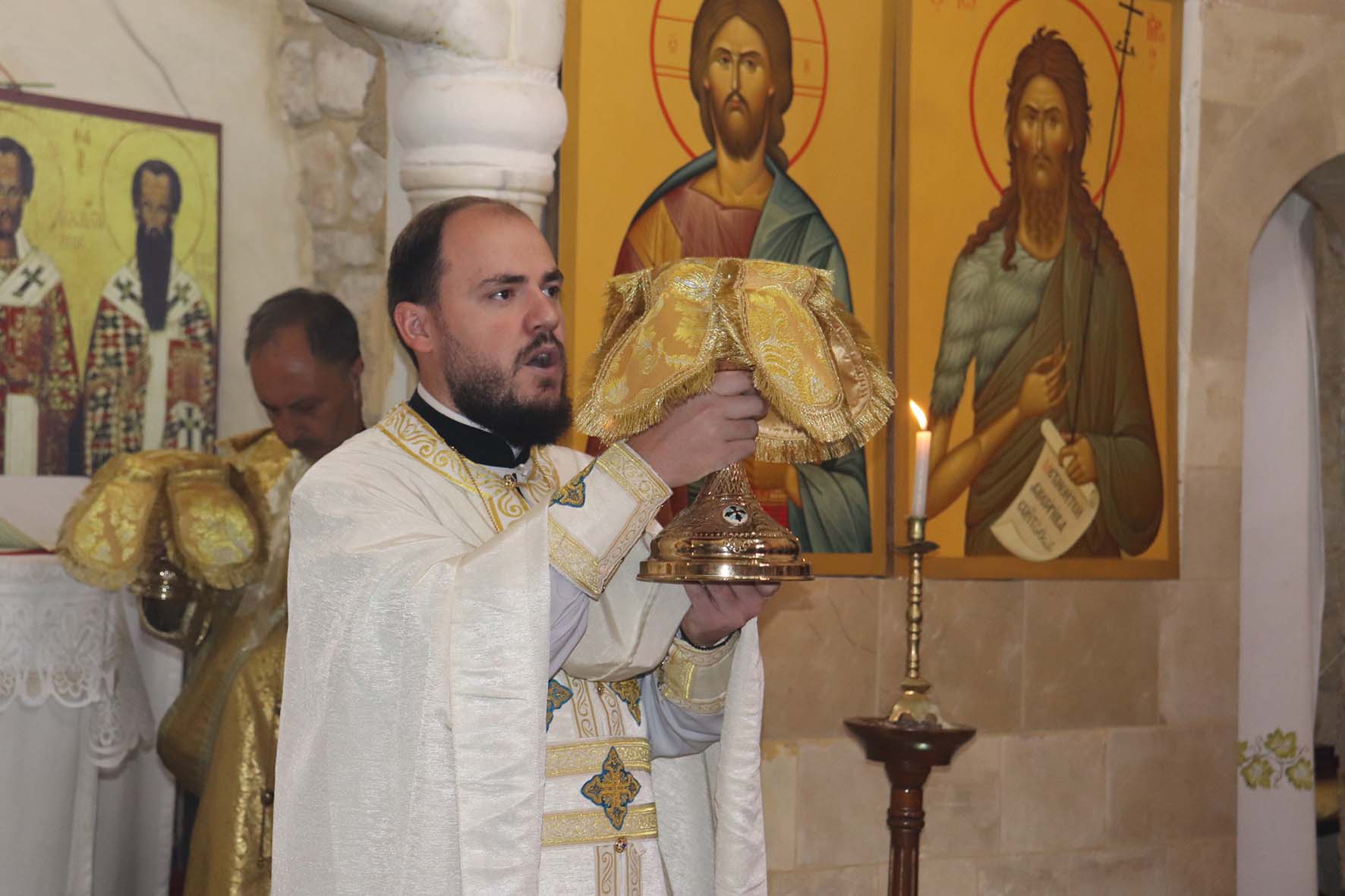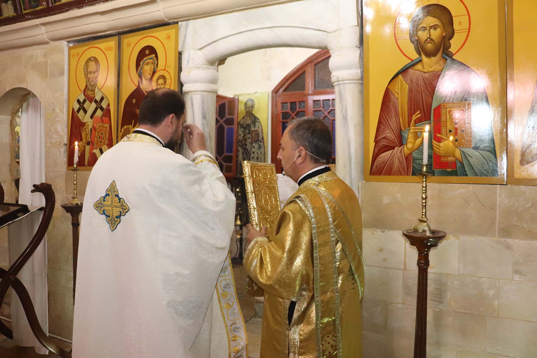 За Божественной литургией молились декан Богословского факультета Баламандского университета архимандрит Иаков (Халиль) и настоятель Подворья Русской Православной Церкви архимандрит Филипп.