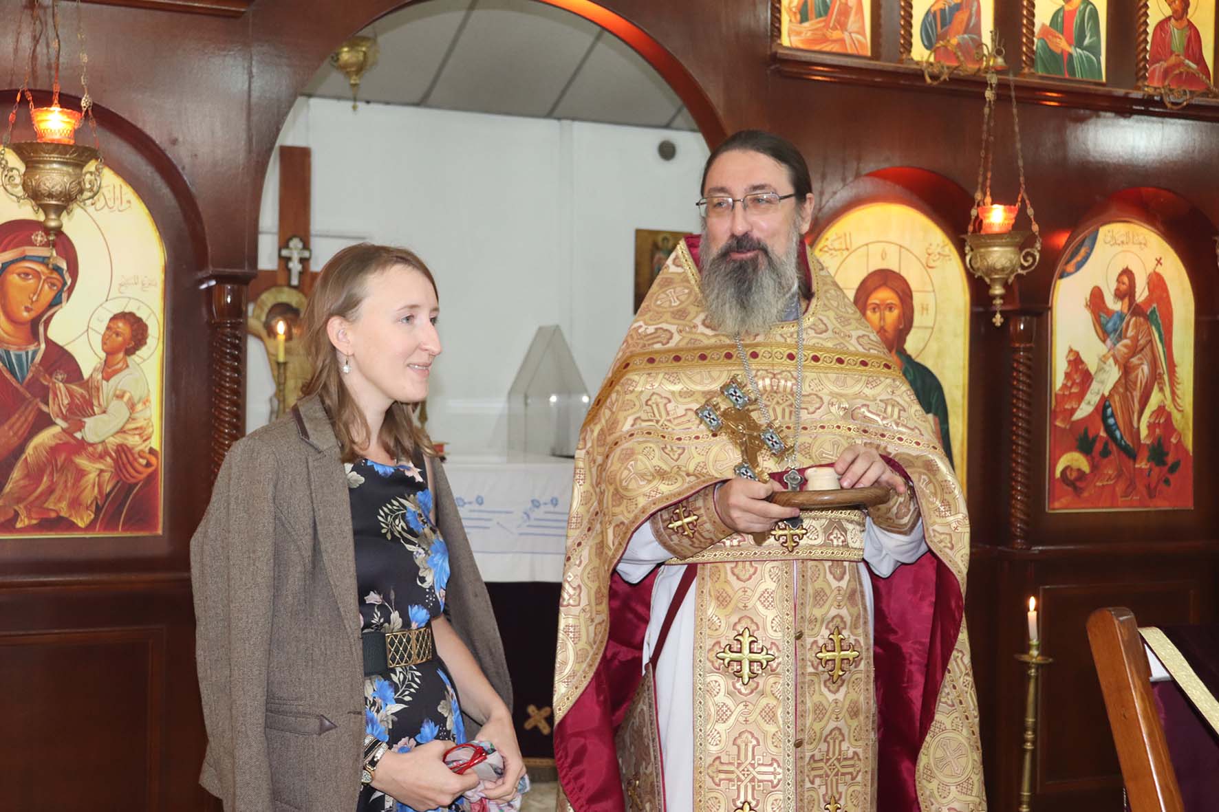 После окончания богослужения настоятель поздравил с Днём Рождения и Тезоименитства постоянную прихожанку Подворья Александру Хаддад.