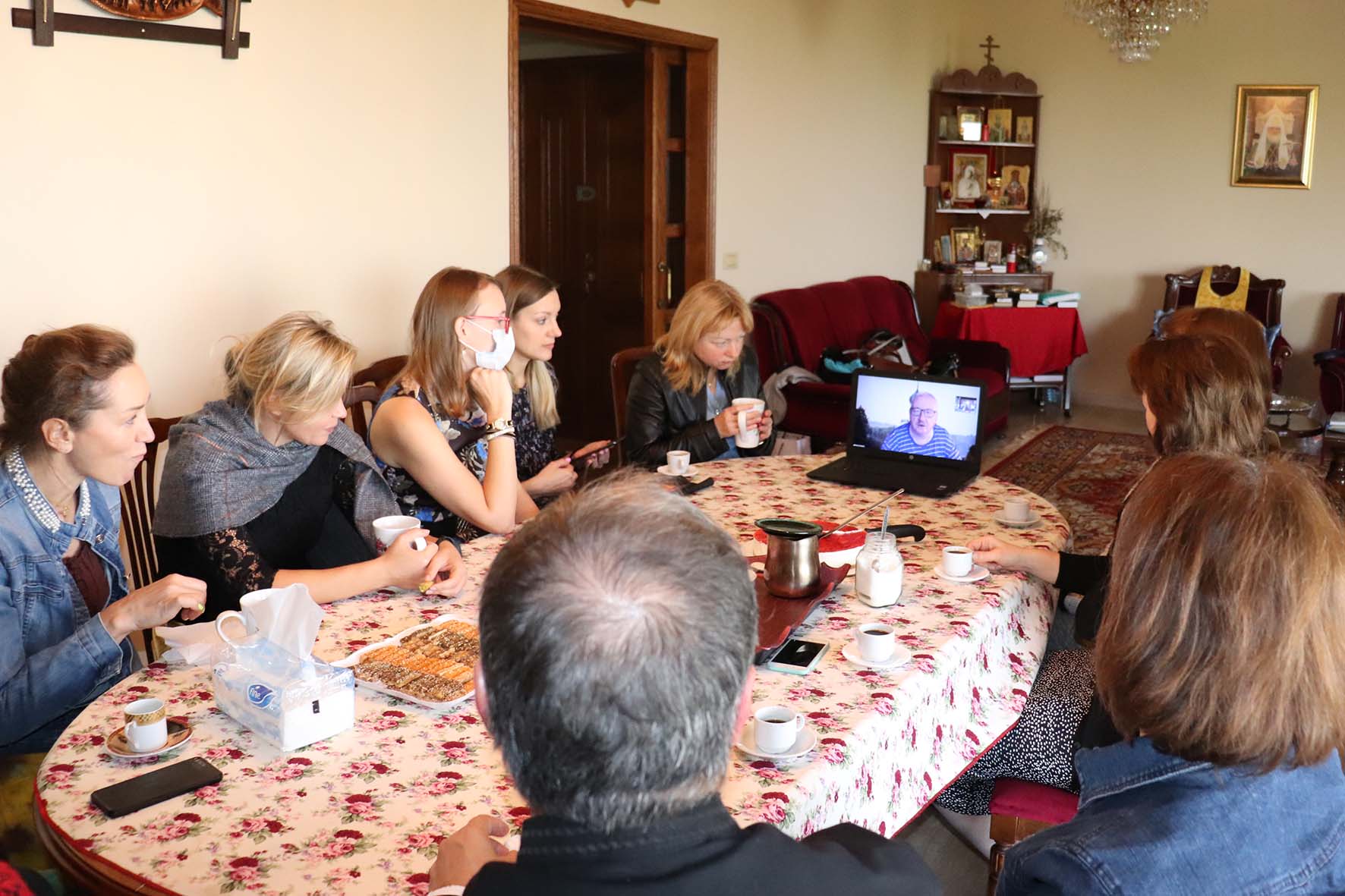Затем на Подворье Русской Православной Церкви в Бсалиме состоялась беседа на тему «Православные колокольные звоны» по Zoom со старшим звонарем Московского Кремля и Храма Христа Спасителя И.В. Коноваловым.